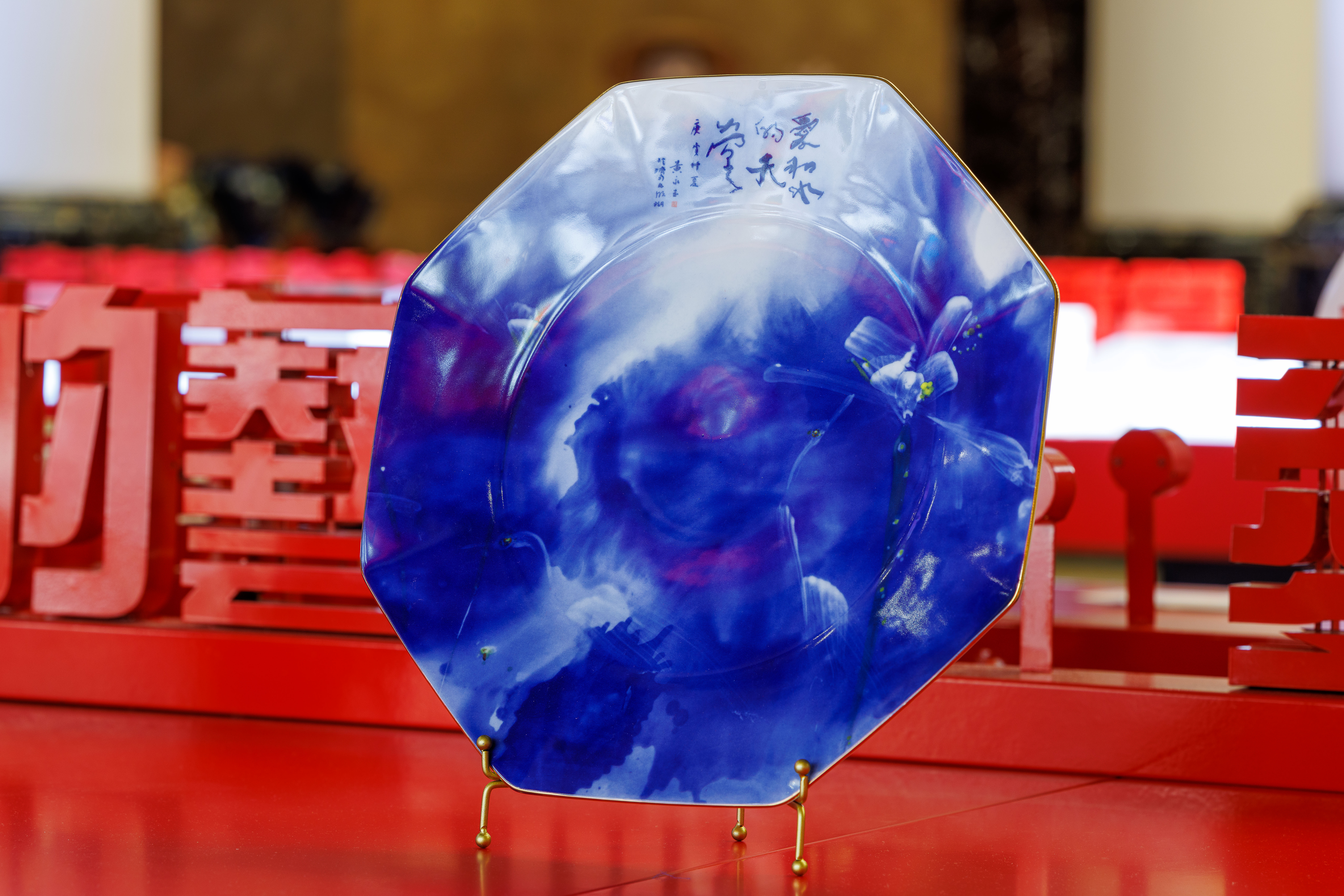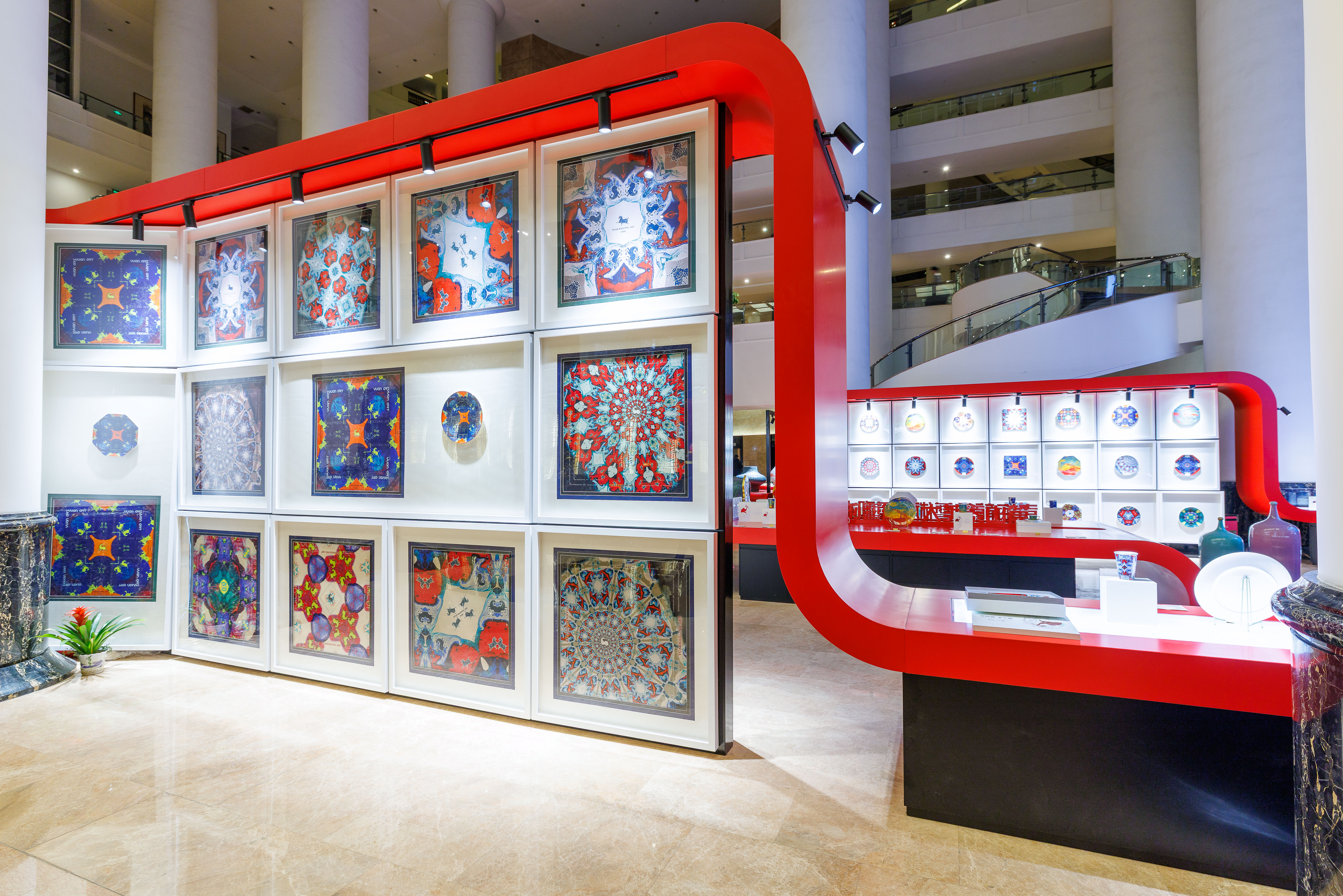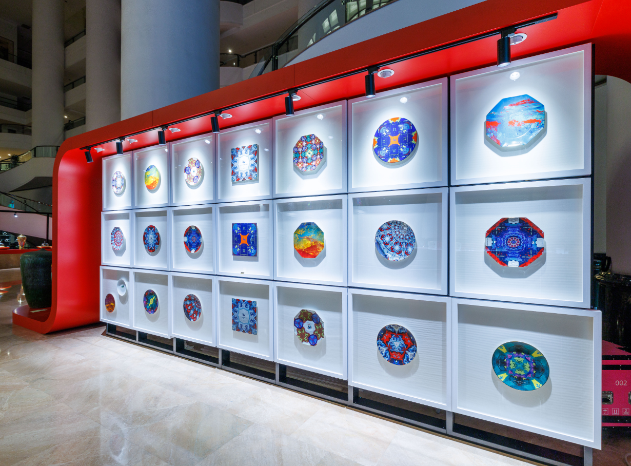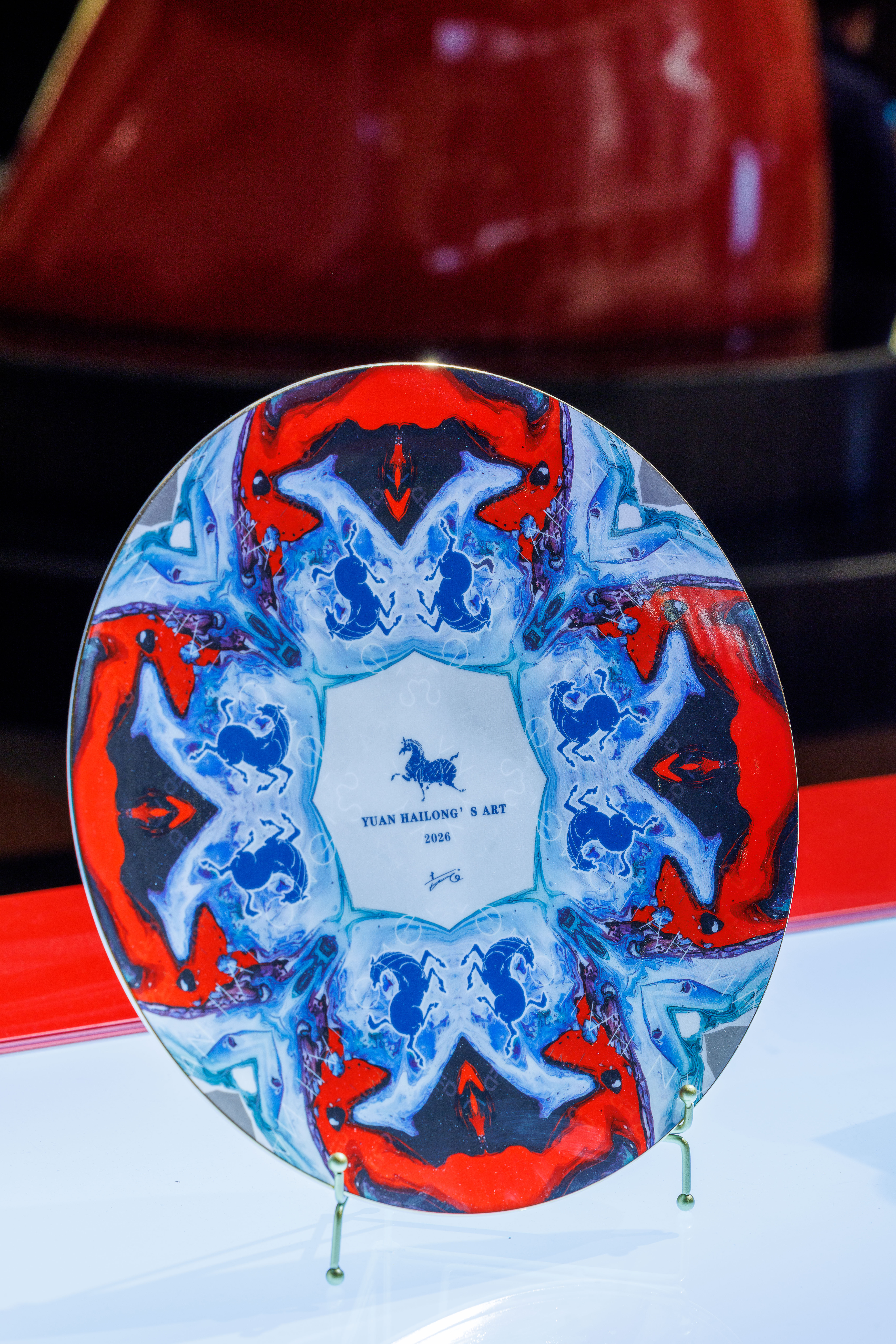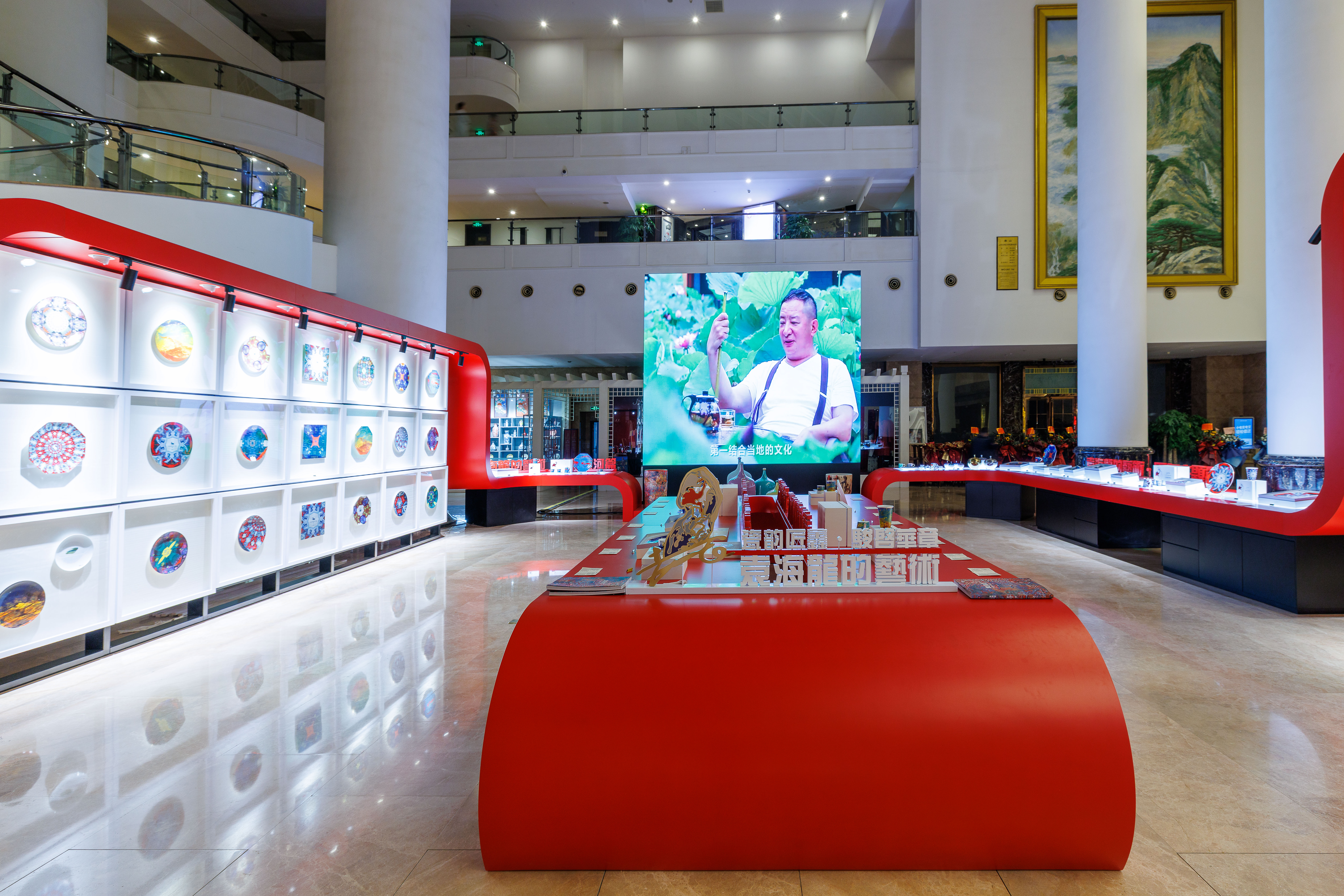 此次袁海龙艺术展的布展颇具巧思,尤其注重作品与山东大厦展览空间的情境融合。例如,在“龙马精神”展区中,为呼应即将到来的农历马年,整体设计以舞动的红色飘带结合奔马形态的展台造型,既营造出喜庆祥和的传统节庆氛围,也使“龙马”意象如视觉线索般贯穿展场,生动诠释出昂扬向上的时代精神。
