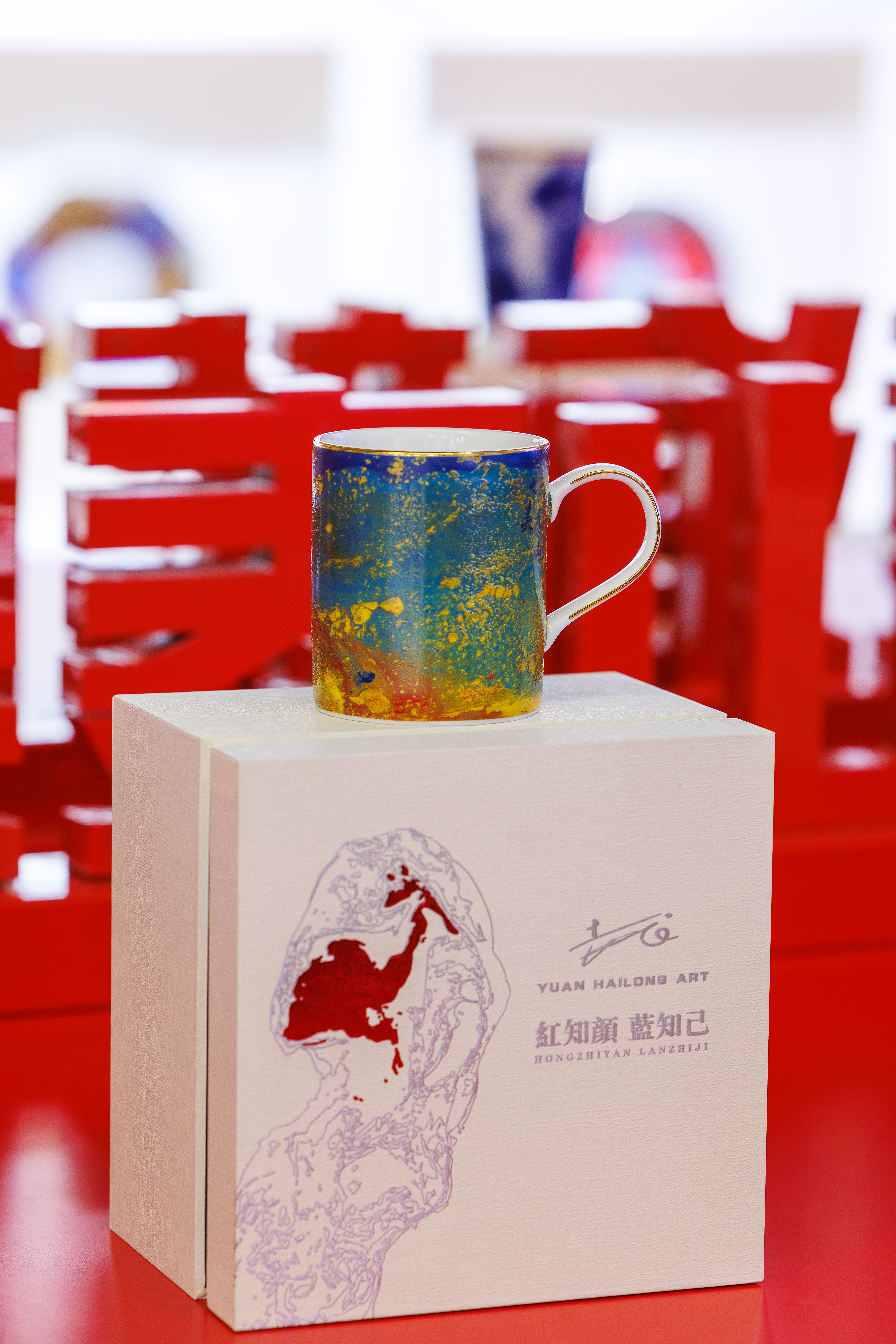 此次展出的艺术衍生品,致力于将袁海龙融贯中西、兼具传统意趣与现代美感的独特艺术语言,转化为可融入日常生活的文创产品。这些作品以“大美泰山”、“大美黄河”、“爱和水的天堂”等核心艺术主题为脉络,进行了系列化延伸与开发,形成了丰富而完整的产品矩阵,系统化地展现齐鲁大地的文化风貌。