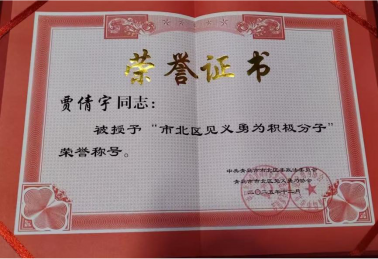 毓璜顶医院护士贾倩宇获青岛市“市北区见义勇为积极分子”称号