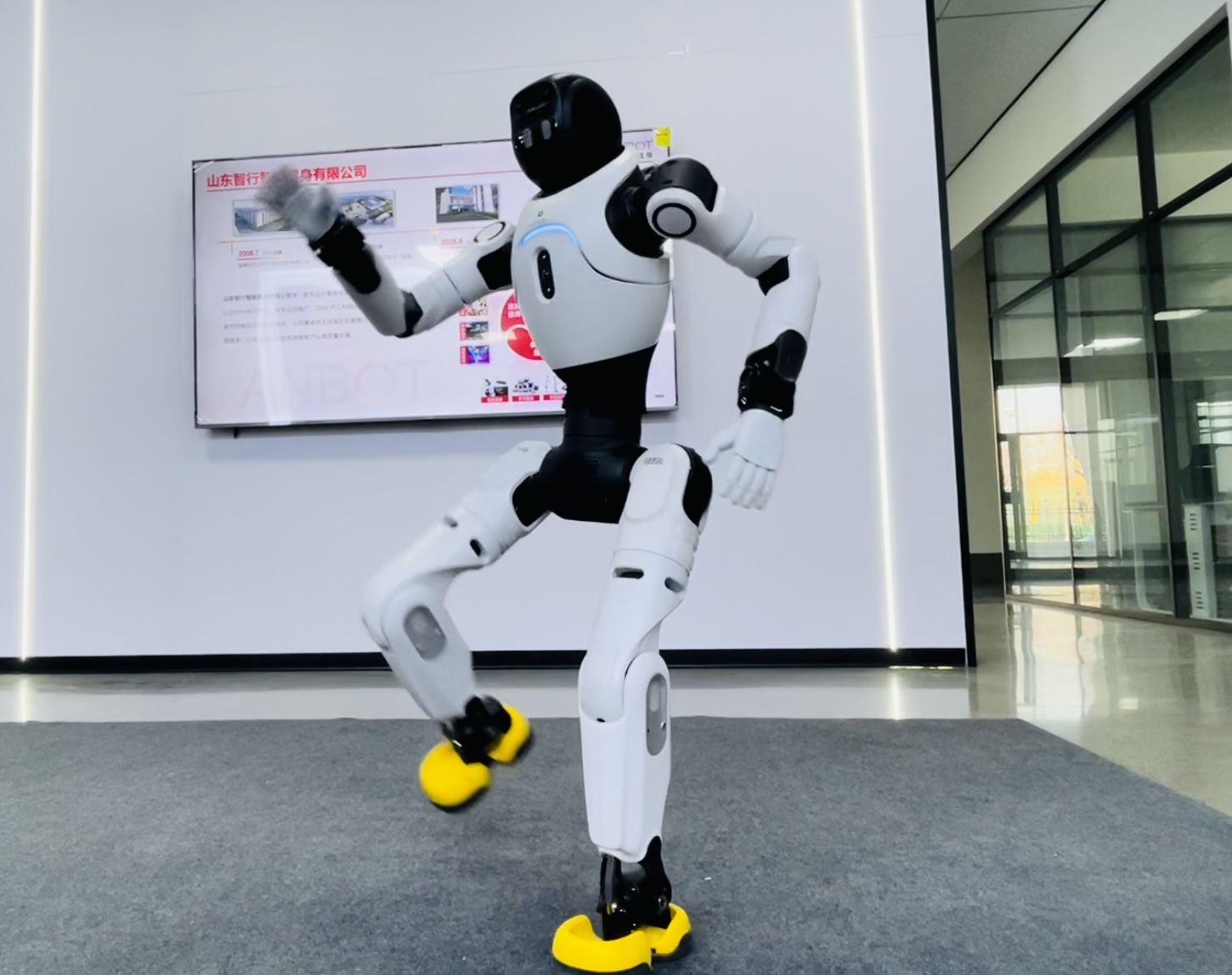 1月13日,在纽氏达特孵化的山东智行智能具身有限公司,一台1.3米高的具身智能机器人跳起了欢快的舞蹈《律动纪元》,动作连贯流畅。这台机器人不光会跳舞,还能自如地完成景区导览、陪伴交互、知识问答、甚至工厂作业等。