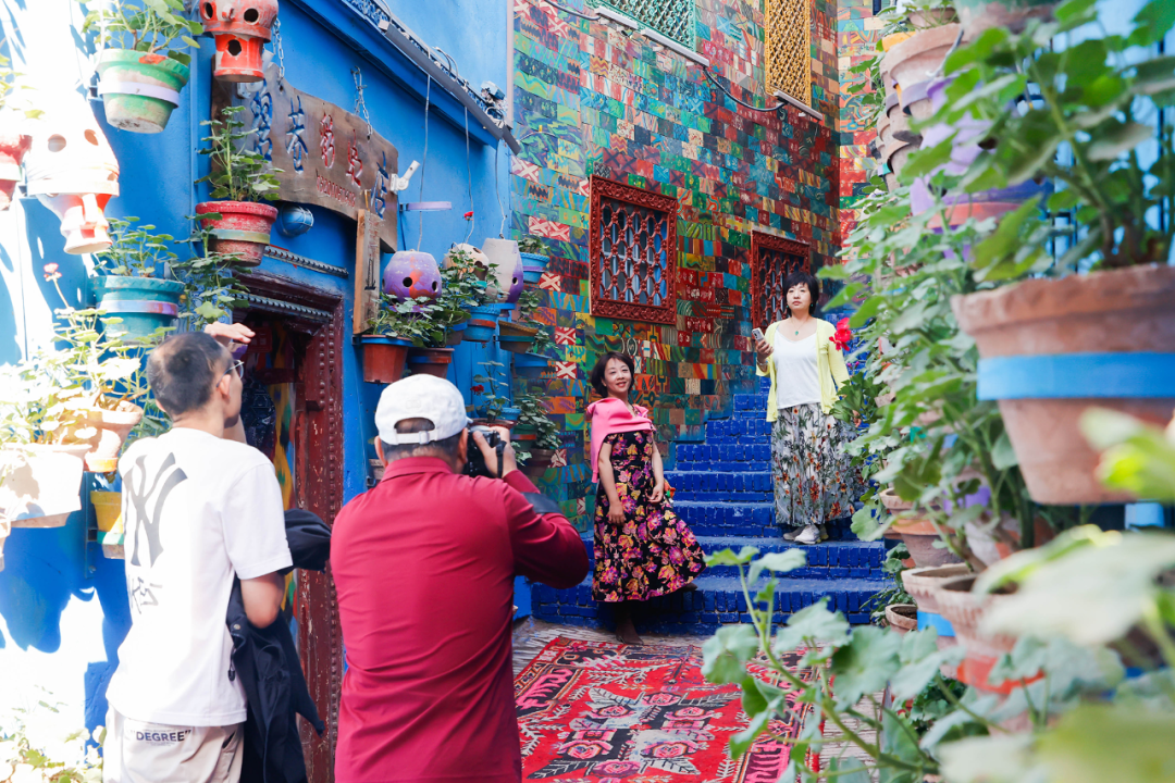 游客争相在喀什古城彩虹巷打卡留念。喀什地区融媒体中心 记者侯立超 摄