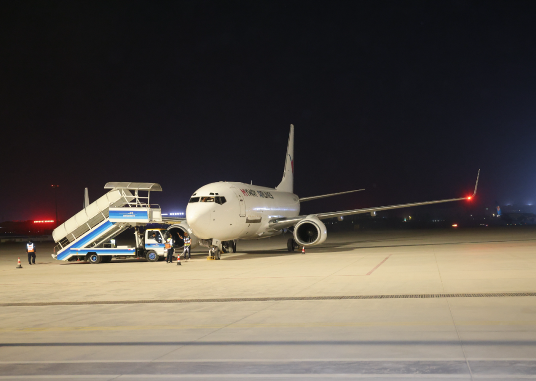 格鲁吉亚第比利斯货运航班飞抵喀什机场。喀什地区融媒体中心 记者陈文军 摄