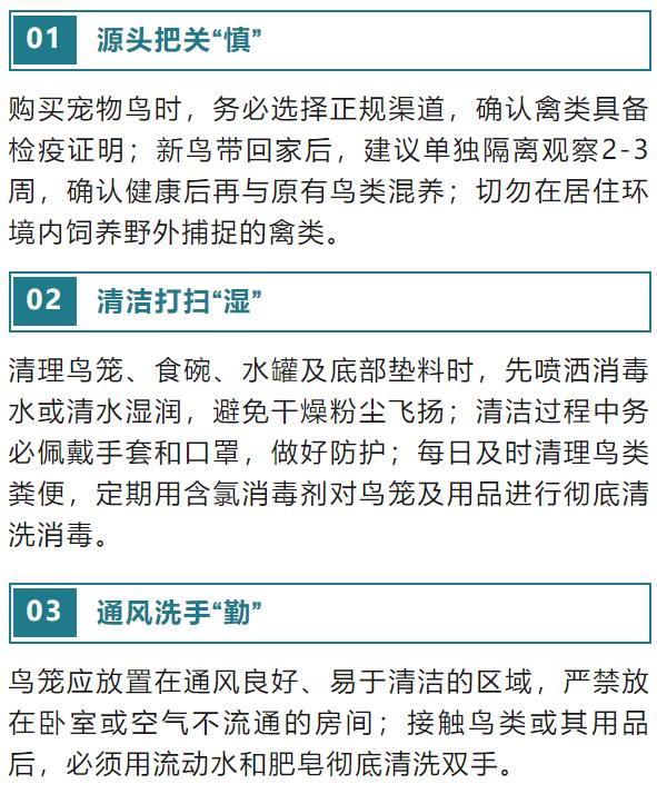 预防鹦鹉热,关键在于科学管理禽类和养成良好卫生习惯。请牢记以下“防护3要点”:
