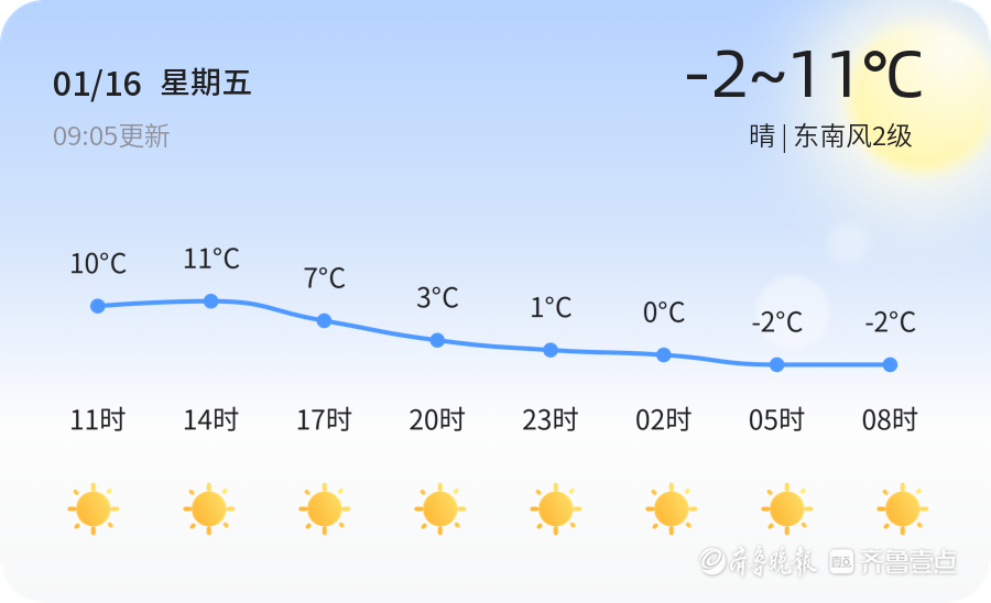 今天是2026年1月16日,农历十一月廿八,星期五。青岛市今天天气晴朗,气温在-2℃至11℃之间,东南风2级,空气湿度为90%,PM2.5指数为109。各区天气情况基本一致,均为晴朗天气,温度温和,适合市民户外活动。明天青岛市天气将有明显变化,预计为多云转雨夹雪,气温在-3℃至3℃之间,东北风4-5级。与今天相比,明天的气温有所下降,且有降水过程,市民出行需携带雨具并注意防滑。未来三天,青岛市天气将以雨夹雪和中雪为主,气温在-3℃至3℃之间波动。其中,18日将出现雨夹雪转中雪天气,19日中雪转多云,20日至22日天气以多云为主,温度逐步回升。市民需注意保暖,尤其是早晨和夜间,温度较低,建议增添衣物。温馨提示
