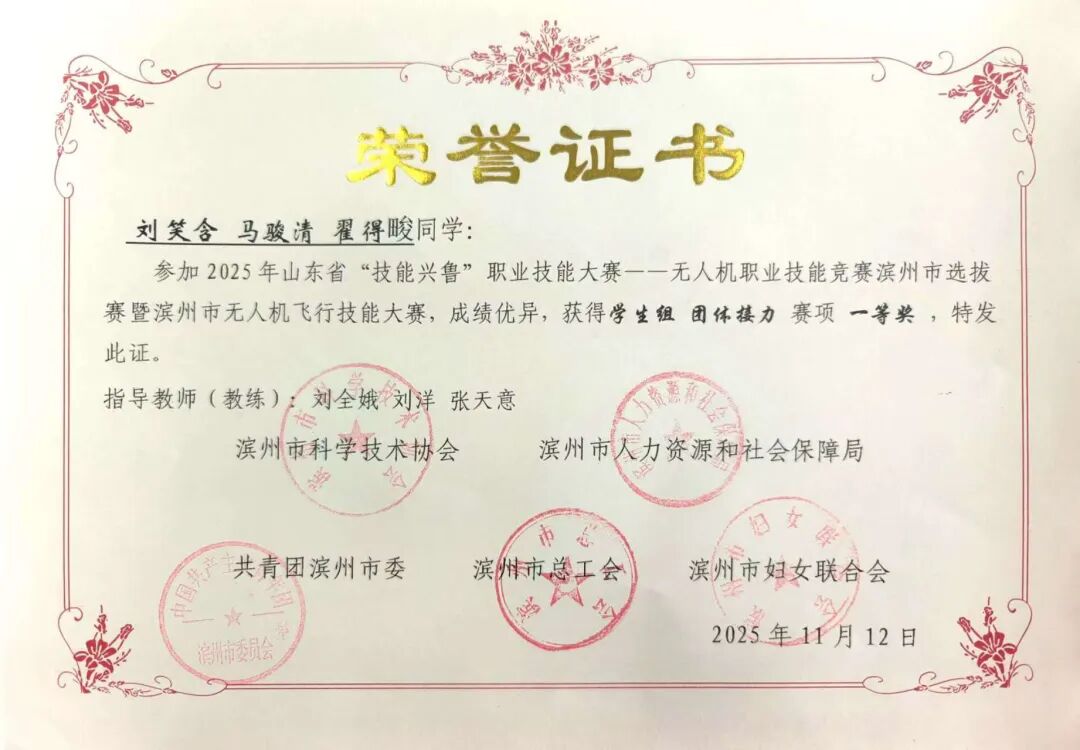 2025年山东省“技能兴鲁”职业技能大赛——无人机职业技能竞赛滨州市选拔赛暨滨州市无人机飞行技能大赛个人越障赛项一等奖