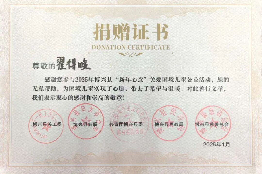 自2017年起,翟得畯便跟随家长投身“敬老、助学、济困”的公益事业,数年如一日的坚持里,用热忱与行动为困境者送去温暖,为长者添上慰藉。一张张义工证书,是他善意的见证,更是他用小小身影扛起社会责任的勋章,这份赤诚与担当,格外动人。