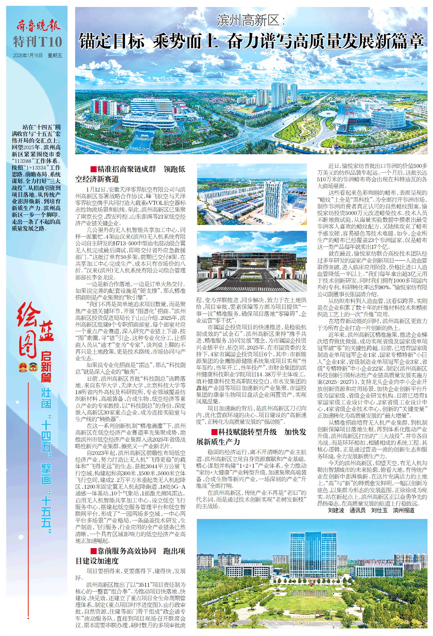 在这一系列创新机制“精准滴灌”下,滨州高新区在低空经济产业赛道率先集聚成势,助推滨州市低空经济产业集群入选2025年省级战略性新兴产业集群,擦亮又一产业新名片。