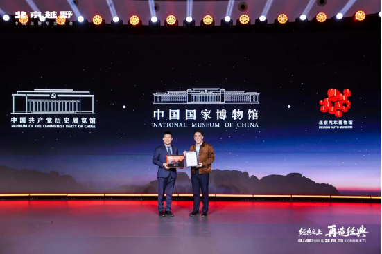 BJ40探险家入馆并入展北京汽车博物馆收藏,将在博物馆里继续讲述中国越野的故事。此前,BJ40增程作为“中国制造‘十四五’成就展”唯一的越野品类展示车,亮相中国国家博物馆;BJ80C阅兵车则被中国共产党历史展览馆荣耀典藏。至此,北京越野成为“三馆连藏”的车企。