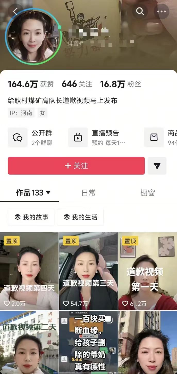 据相关媒体报道,近日,河南女子牛娜在抖音连续多日发布向丈夫的公开道歉视频,引发网友广泛关注。牛娜称,因丈夫与已婚女同事存在长达5年的婚外情,她在社交平台曝光了二人姓名、工作单位及消费证据等信息,随后被丈夫起诉侵犯名誉权,法院最终判决牛娜需连续15天公开道歉。据悉,自1月12日起,牛娜已连续发布4天道歉视频,她以“服从判决”为名开启的这些道歉视频,单条视频点赞量超50万。
