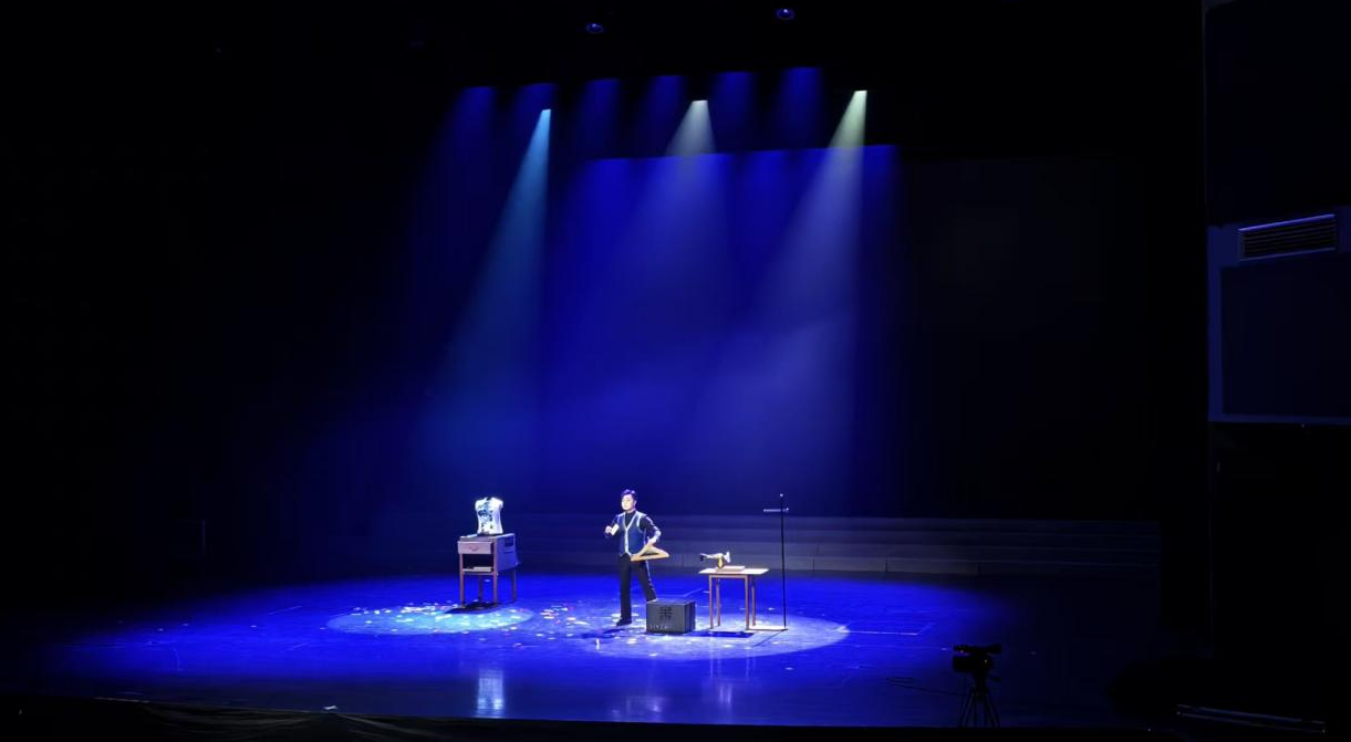 展演现场,好戏连台、异彩纷呈。儿童情景剧《老舍和他的学生们》以老舍先生离别济南前的回忆为线索,生动勾勒出泉城诗意的自然风貌与温暖的人文底色;吕剧《如梦令》沉浸式演绎李清照与赵明诚的初见情境,水袖翩跹、民乐悠扬,引领观众步入宋词意境;京剧《锁五龙》《闹龙宫》唱念做打尽显功力,以铿锵唱腔与扎实功底再现经典传奇,尽显梨园风采;曲艺作品《看黄河》以“穿越+自驾”的奇幻设定,串联起黄河沿岸风物人情,礼赞新时代黄河治理的伟大成就;舞剧《小梦——再见杨绛》片段以肢体语言叩问“爱、离别、生命”的永恒命题;莱芜梆子《生财有道》聚焦防范非法集资主题,创新采用“非遗+普法”的形式,在高亢质朴的唱腔中传递“勤劳致富”的正向价值观;压轴登场的魔术《年华》曾荣获第十四届上海国际魔术大赛银奖,将中式美学与法式浪漫巧妙融合,营造出奇幻唯美的舞台意境,赢得全场阵阵喝彩。