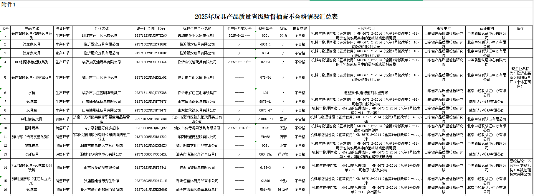 水枪、玩具车、弹力球等这16批次玩具省级监督抽查不合格