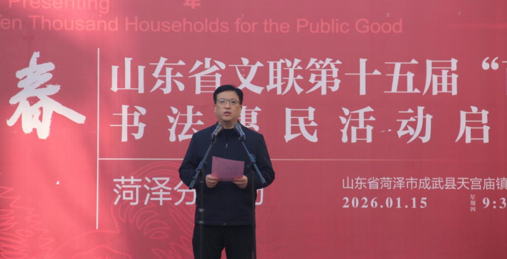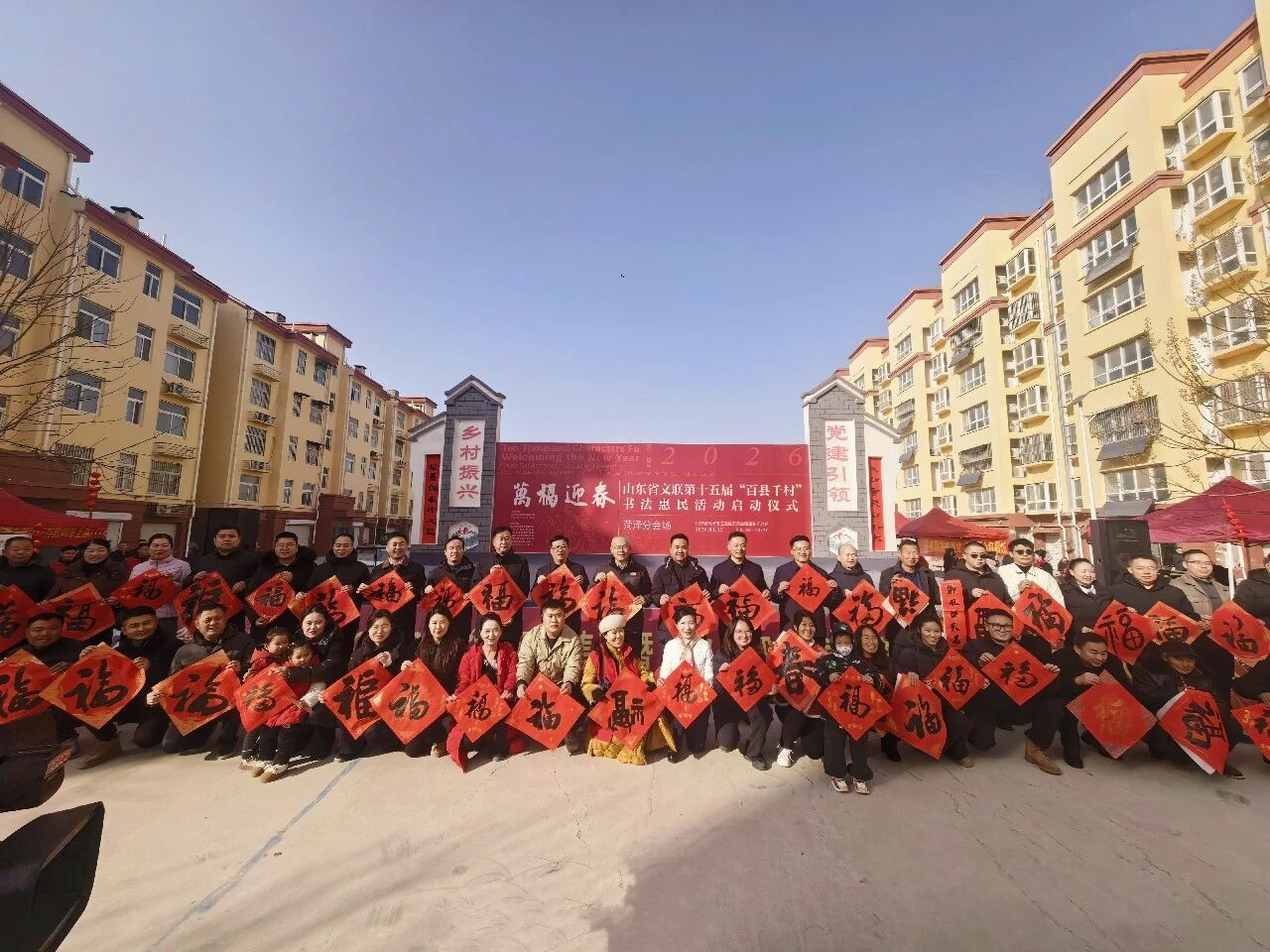 为传承弘扬中华优秀传统文化,按照中国书协、山东省文联有关工作部署,借鉴往年工作经验,2026年1月15日上午,由山东省文联、山东省书法家协会主办,菏泽市文联、成武县委宣传部等承办的万福迎春——山东省文联新时代文明实践第十五届“百县千村”书法惠民活动(菏泽分会场)在成武县天宫庙镇刘楼村康和苑社区广场启动。