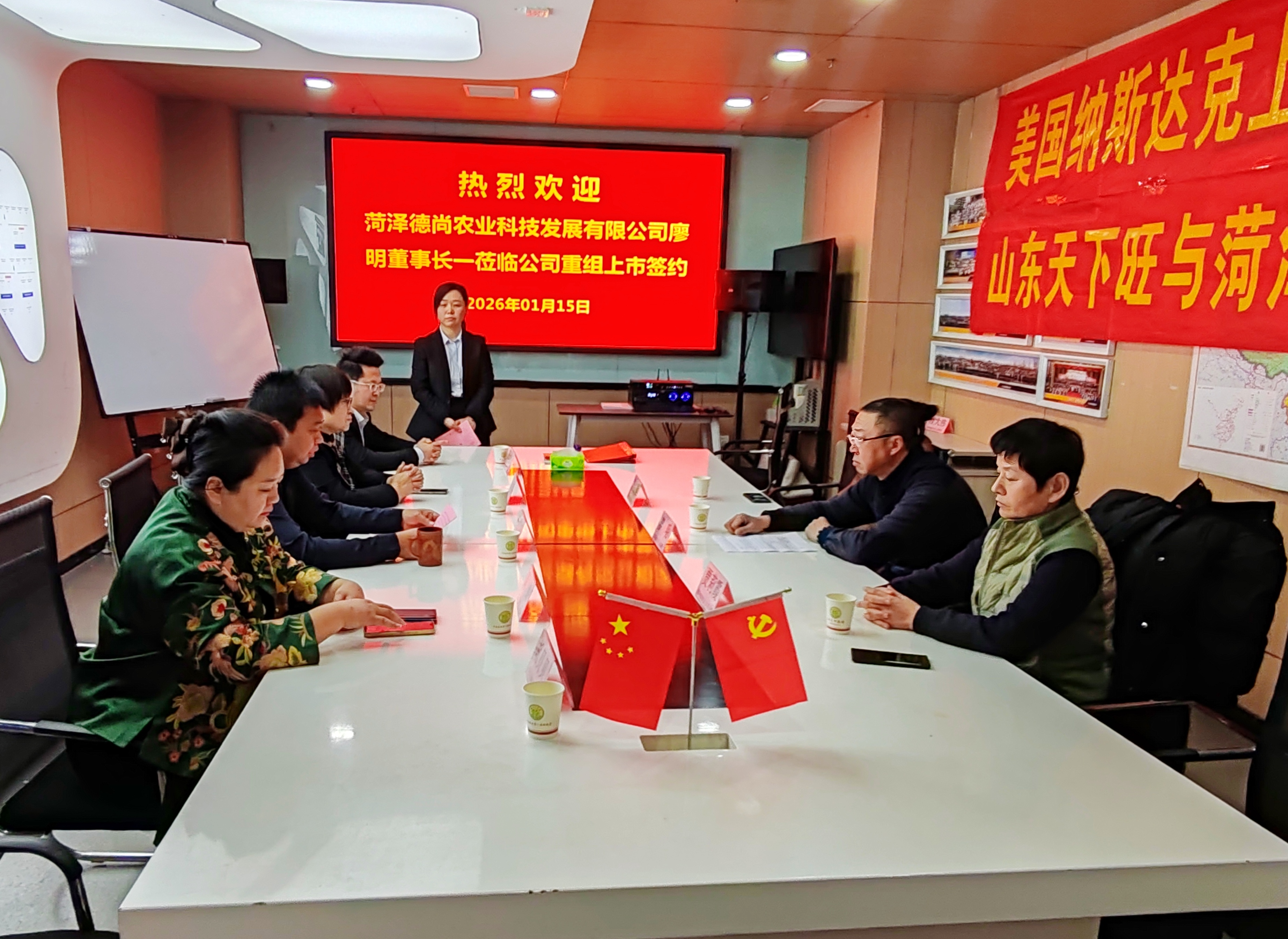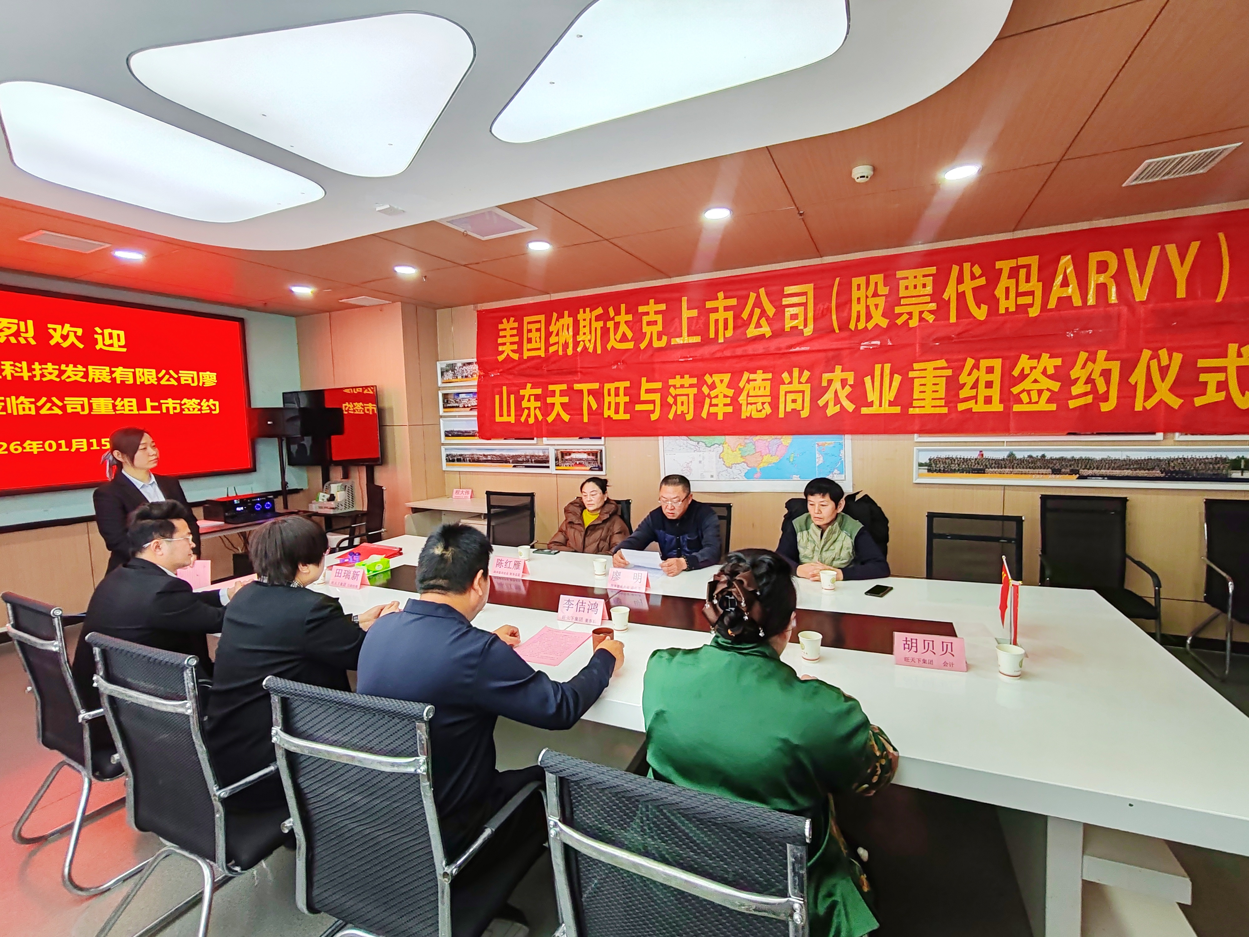 1月15日上午,山东天下旺农业有限公司与菏泽德尚农业科技发展有限公司正式携手,在菏泽举行签约仪式,共同签署重组上市协议。此次重组标志着双方将共同推进菏泽德尚农业科技发展有限公司赴美国纳斯达克上市,开启合作共赢的新篇章。