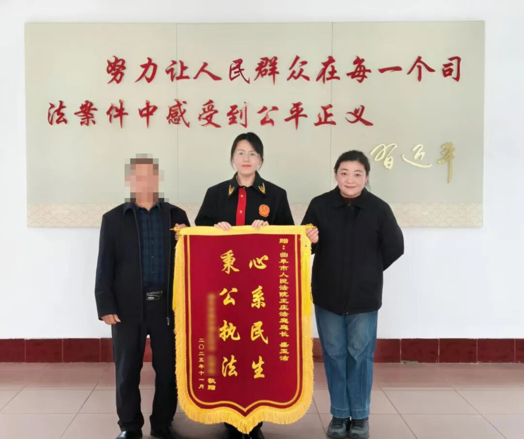 近日,一位当事人将一面印着“心系民生 秉公执法”的锦旗,送到曲阜法院王庄法庭盛玉洁法官手中。鲜红的锦旗,烫金的大字,不仅体现了当事人对案件办理结果的高度认可,更是对法官秉公办案、司法为民工作作风的生动褒奖。