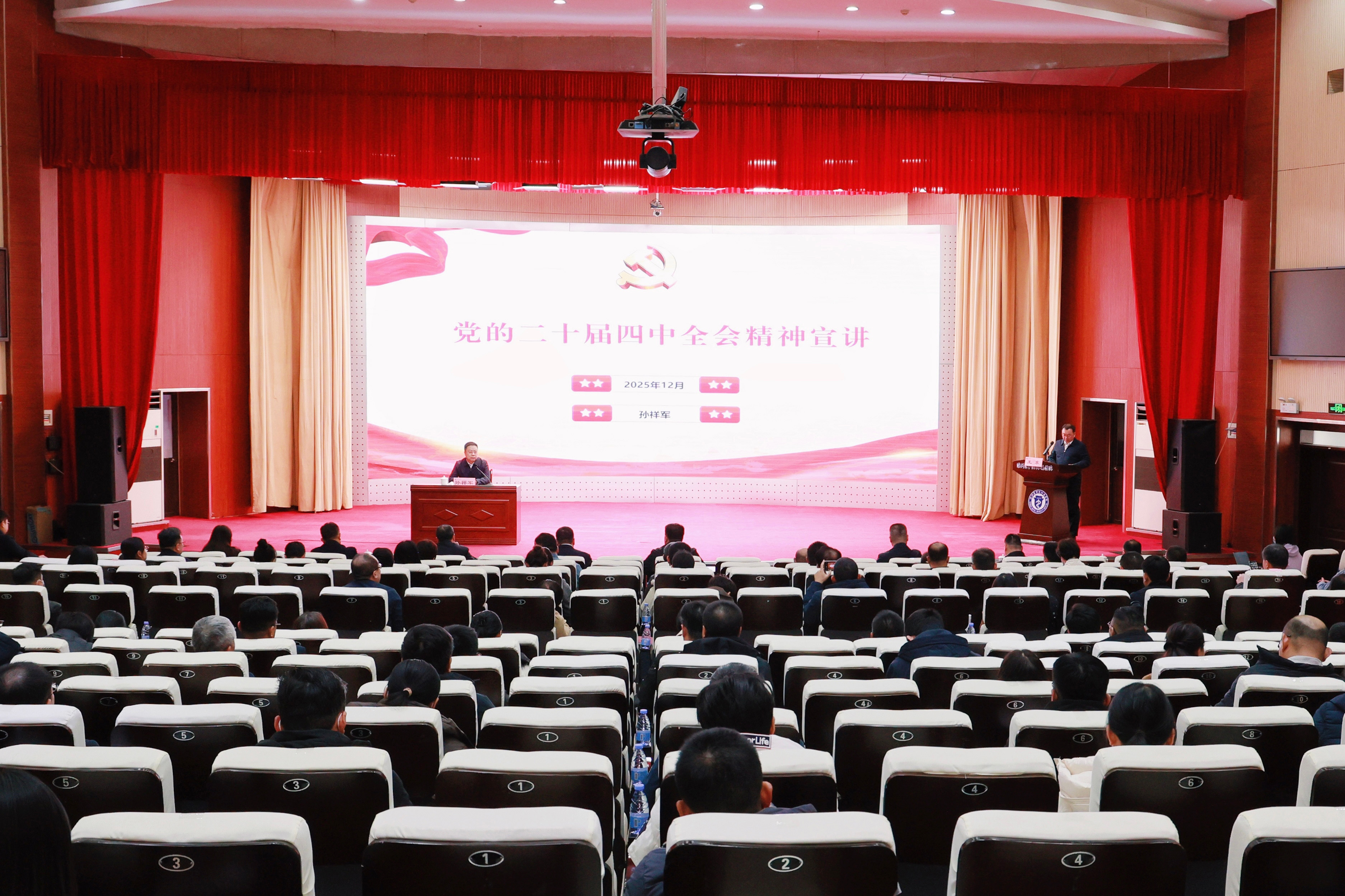 2025年,医院党委全面学习贯彻落实党的二十届四中全会精神。印发学习宣传贯彻全会精神通知,学校党委书记孙祥军为医院党员干部宣讲全会精神,医院领导班子成员到分管领域、联系科室等开展宣讲,各基层党组织通过“三会一课”“廉政查房”等带领党员干部职工学习领悟全会精神,实现全会精神学习全覆盖。医院先后举办5期中层干部管理能力提升培训班,累计培训党组织书记和中层干部464名,推动党建与业务深度融合,引领全院党员干部锚定奋斗目标,锐意创新、担当实干。