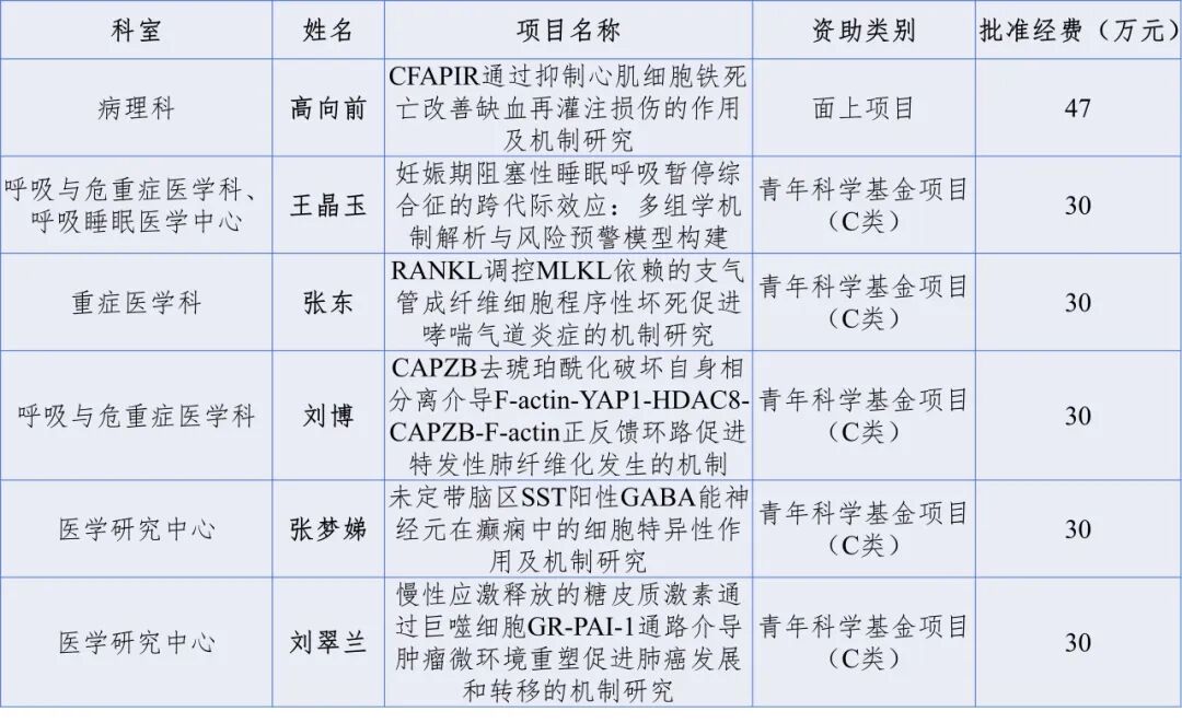 2025年获批国家自然科学基金项目