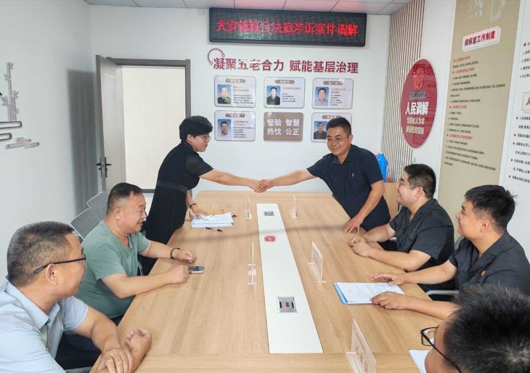 此前,大安镇某加工企业因资金周转困难拖欠9名工人工资引发矛盾。驻综治中心法律顾问第一时间对接人民法庭,法官依托调解室联合调解员、综治中心工作人员共同开展多轮调解,最终促成各方和解。据统计,大安人民法庭依托该联动机制,已成功化解跨部门、跨领域疑难纠纷30余件,实现“1+1>2”治理效能。