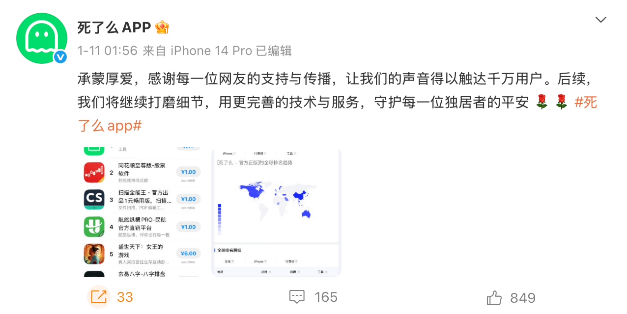 并且,官方微博表示,由于报道后,该App在海外呈现了爆发式增长。