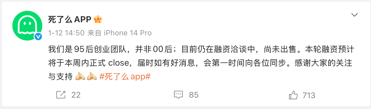 公开信息表示,6个月前,在经过不到1个月的研发,由三名“95后”制作完成并上线“死了么”App。