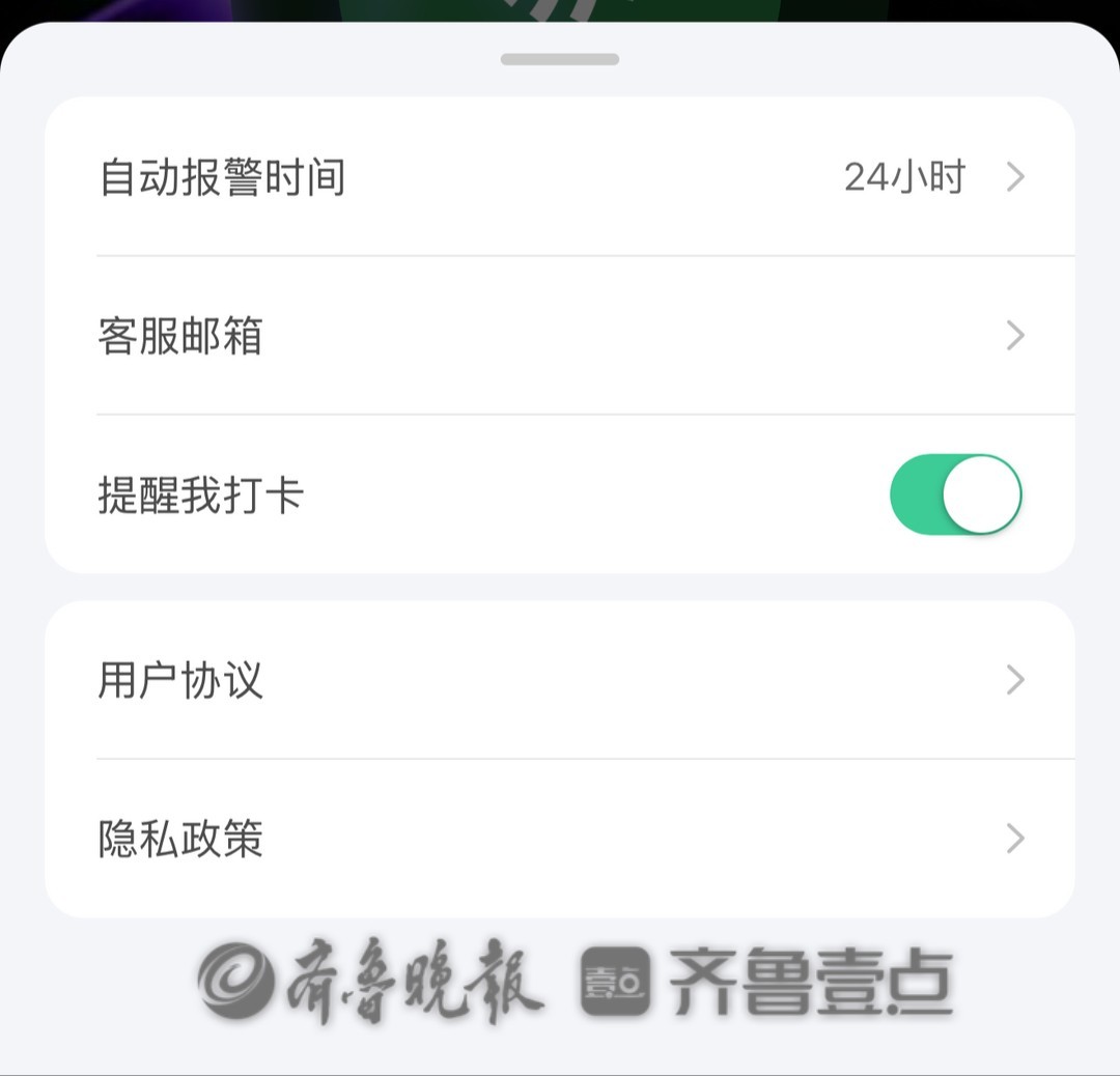 点击“系统设置”选项后,有多个报警时间段可自行选择,并且还有客服邮箱、用户协议等多项细分清单等。