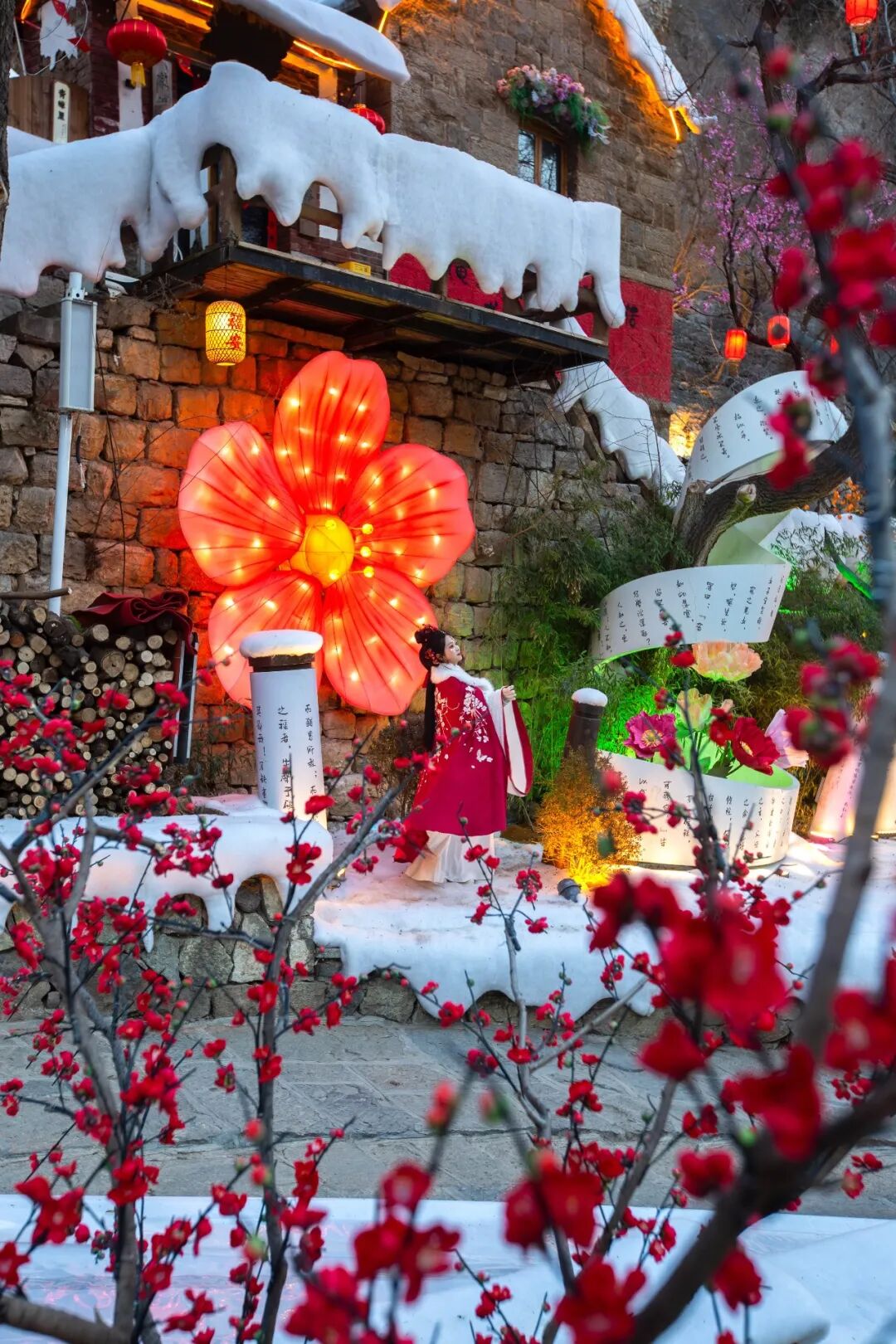 这个冬天,红叶柿岩已悄然换装。雪覆红墙,疏影横斜,邀你共赴踏雪·寻梅记。初探古村,红梅数点,一隅静谧点染成趣。寻幽深入,雾凇沆砀,红白掩映如诗如画。盛放庭中,琼枝堆云,肆意晕染满园风华,中式美学氛围感拉满,只等你来打卡定格。
