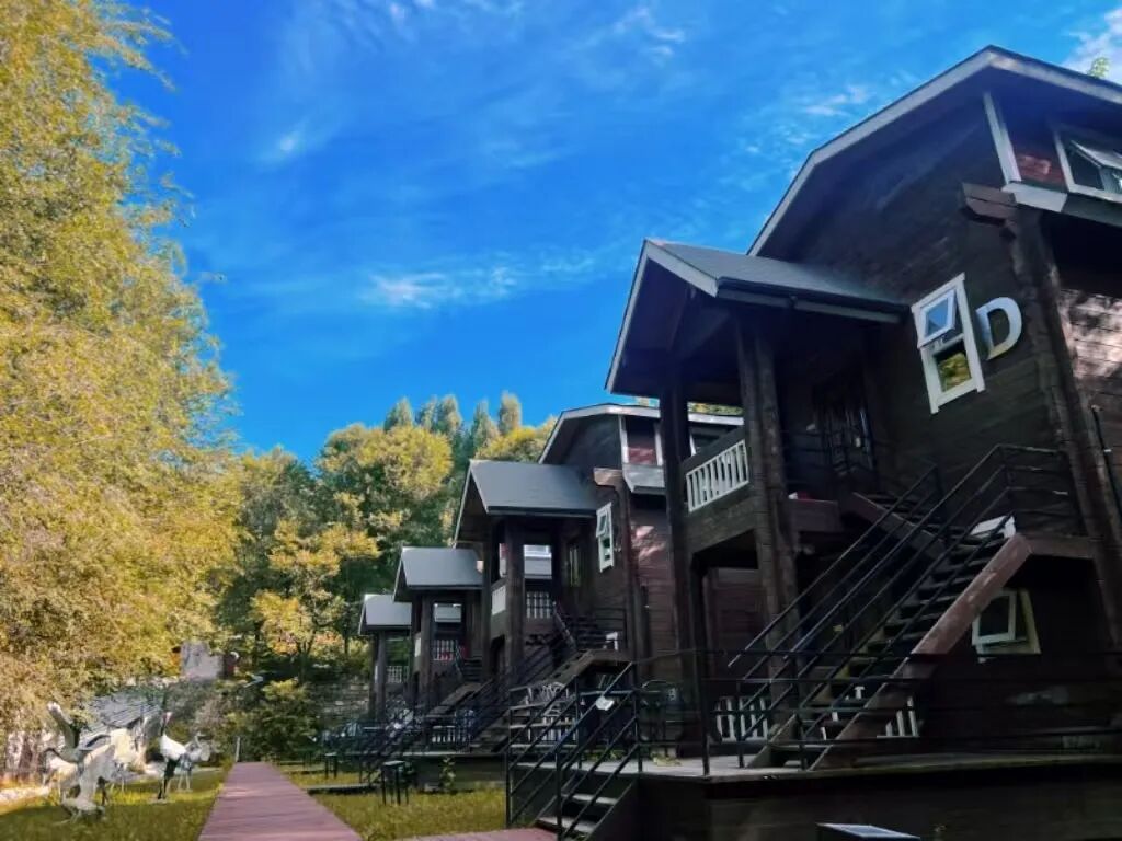朱水湾兼具自然野趣与活力氛围。木屋散落在葱郁的山林间,与周边的咖啡屋、儿童游乐区形成动静结合的画面。木质的温暖、草坪的鲜绿、星空的璀璨,共同构成了这幅充满活力的山居图景。