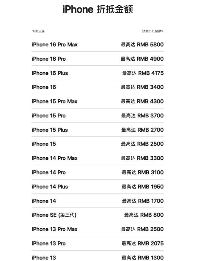 1月16日,苹果两次调整iPhone、iPad、Mac等设备的以旧换新折抵价。iPhone16ProMax中国区最高可抵5800元,MacPro达17100元。同时,华为、小米等安卓机型也纳入折抵范围。(潇湘晨报)