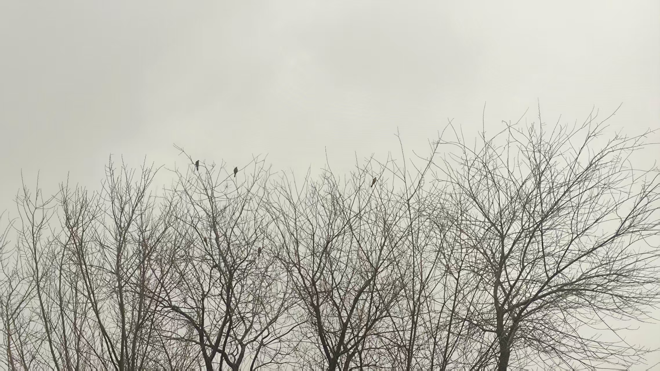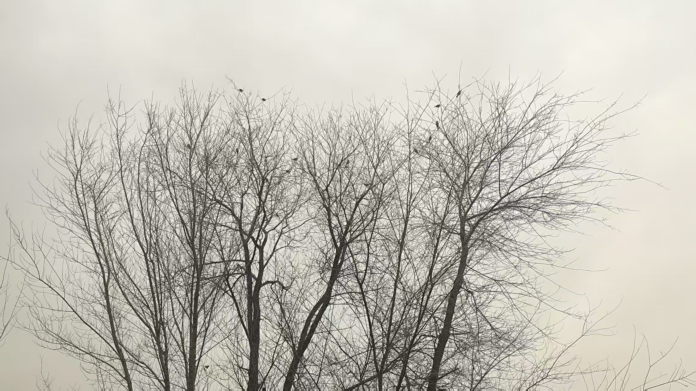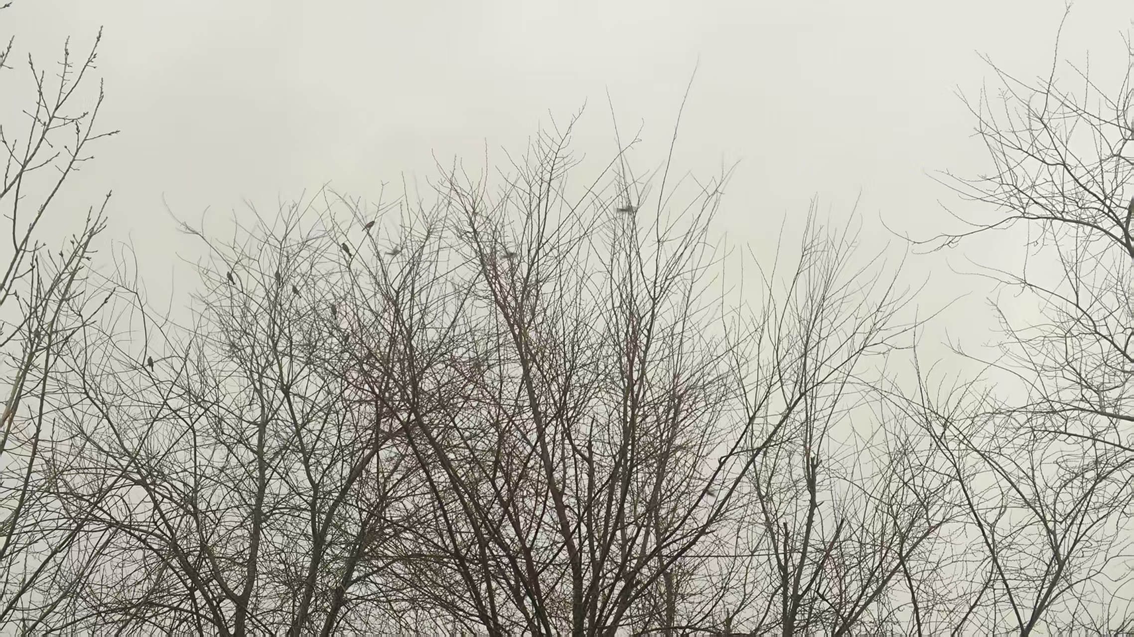 冬天的傍晚,鸟雀在光秃秃的树枝间嬉戏跳跃,宛如素净简洁的国画。(曹县融媒体中心丁有策拍摄)