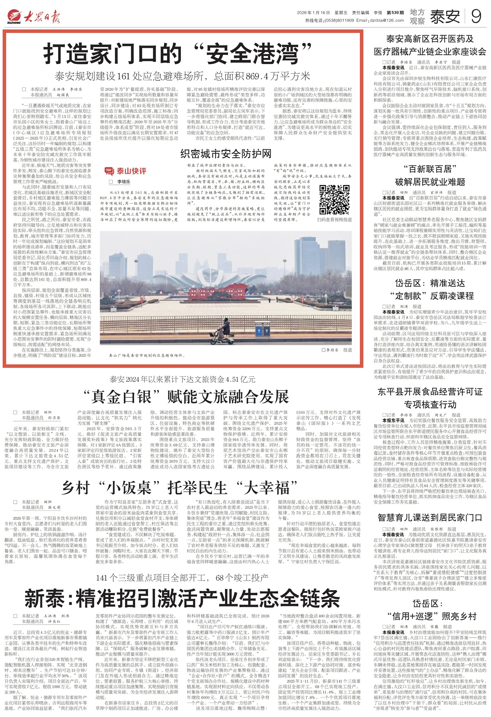 1月16日,大众日报《泰安新闻》推出策划《打造家门口的“安全港湾”》,报道泰安规划建设161处应急避难场所,总面积869.4万平方米,着力打造家门口的“安全港湾”。详情请点击这里—