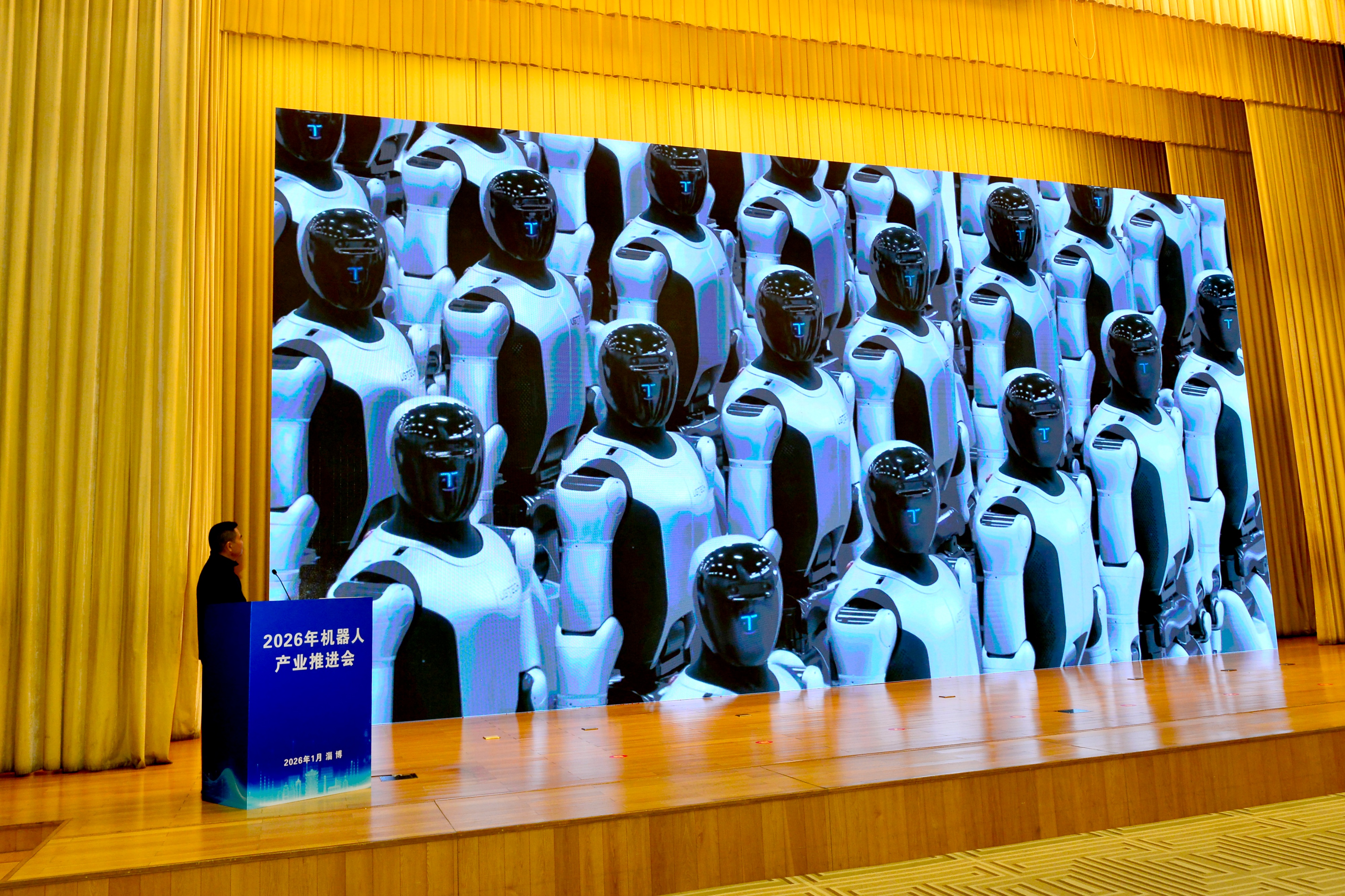 1月16日,2026年机器人产业推进会、淄博市重点产业链暨机器人产业链高质量发展推进会举行。链上相关部门、企业和科研院所齐聚淄博,为机器人产业高质量发展出谋划策,集中签约重大项目,共绘机器人产业宏伟蓝图。(大众新闻·鲁中晨报记者贾亮)