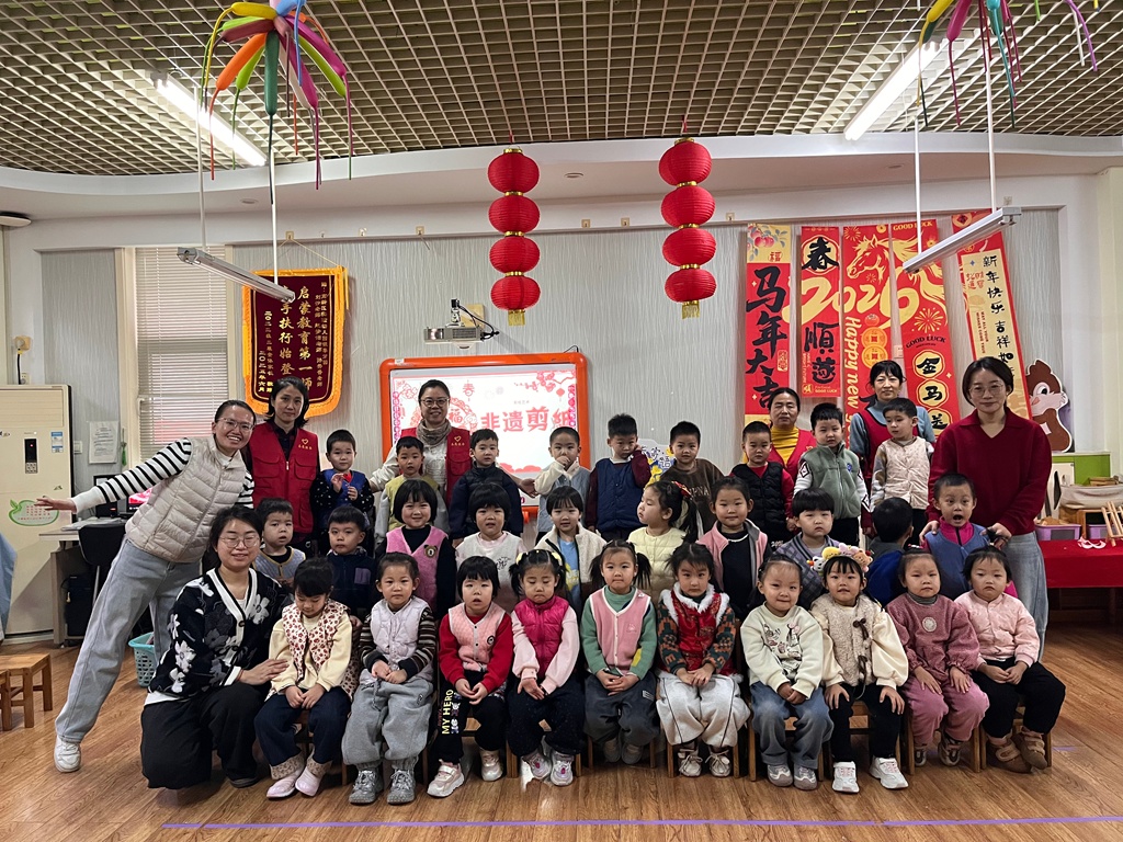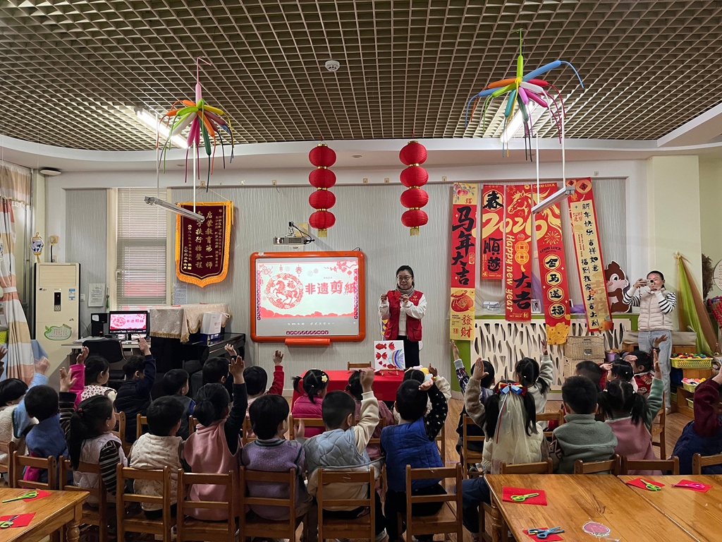 1月16日,淄博高新区四宝山街道银泰城社区的非遗剪纸走进了高新区实验幼儿园银泰分园小班,一场以“剪纸润童心 非遗伴成长”为主题的活动热闹开展。来自社区“四宝·阅里”文化书院银泰匠心“守”艺坊的手艺人们为孩子们带去了“年年有余”非遗剪纸作品的制作方法,30余人共同参与其中,一同感受非遗剪纸的独特魅力。