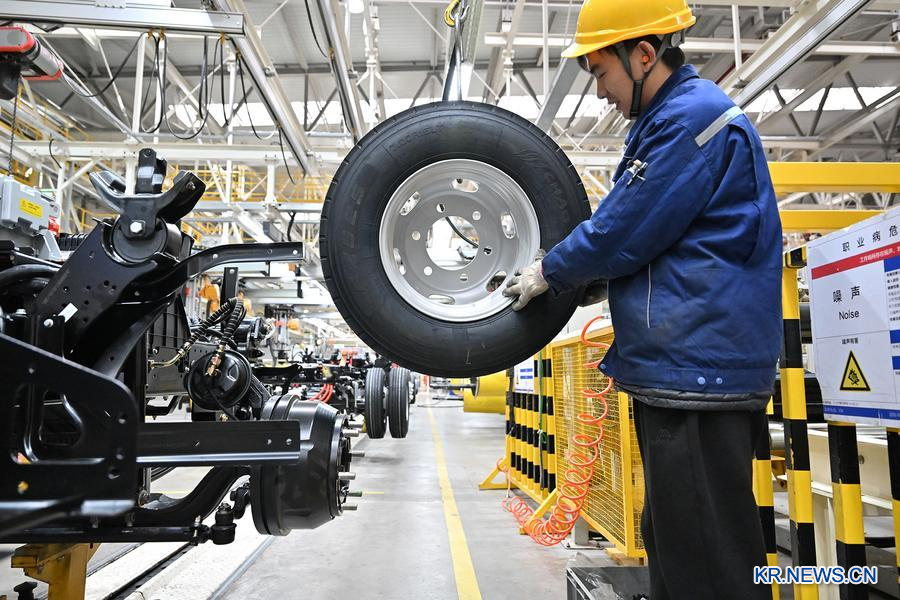 2025년 12월 12일 허난성 상추(商丘)시 위상(豫商)경제기술개발구의 한 신에너지차 기업에서 생산 작업 중인 직원. (사진/신화통신)