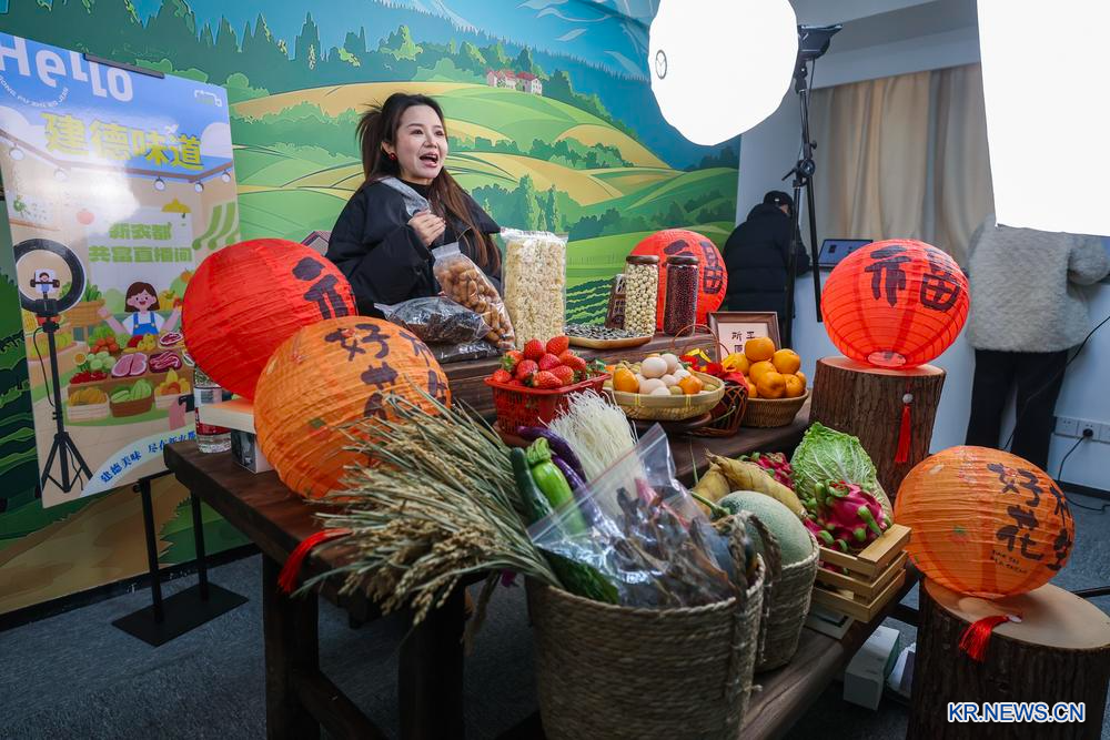 [신화망 젠더 1월16일] 춘절맞이 용품 축제 및 신춘(新春) 소비 시즌 행사가 15일 저장(浙江)성 젠더(建德)시 겅러우(更樓)가도(街道·한국의 동)의 한 농산물 도매시장에서 열렸다. 행사에는 농업부산물, 특색 미식, 무형 문화유산 요리 등이 선보였다.