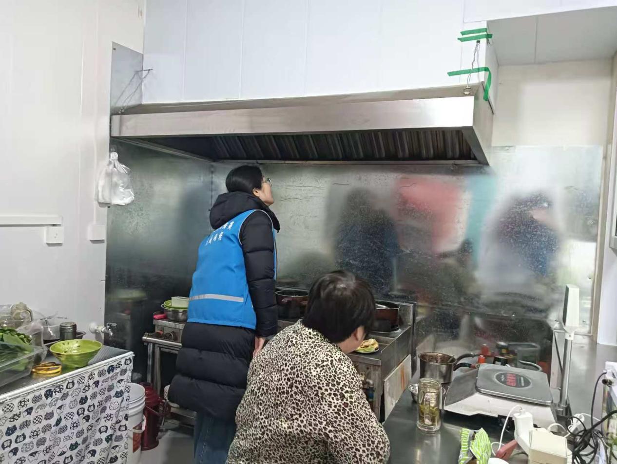 行动中,大家深入各餐饮店后厨,重点检查油烟机是否正常启用、油垢是否定期清理、有无油烟堆积等情况。针对部分店铺存在的油烟机清洗不及时、油污残留等问题,现场提出整改意见,并建立台账督促限时落实,确保排查到位、整改到位。