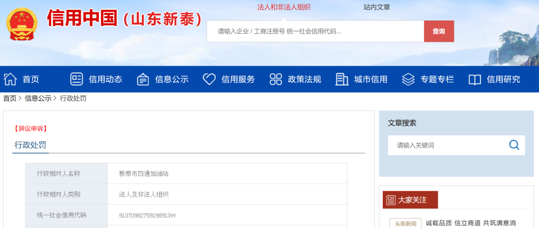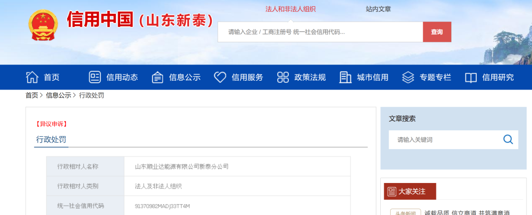 1月15日,信用中国(山东新泰)网站发布两则行政处罚,详情如下: