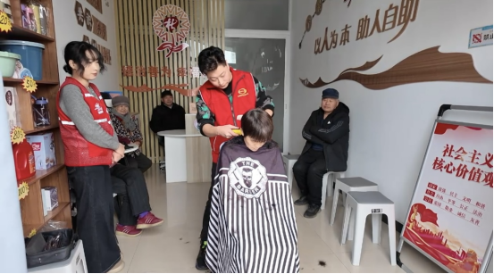 西满庄村地处城郊,老年居民占比超三成,多数老人因行动不便或距离城区远,理发成了“烦心事”。上午8时30分,村委办公室里早已排起长队,宁阳纤手美发店的理发师们带着工具准时到位,围布、剪发、修型……动作娴熟麻利。理发师们一边剪发一边和老人唠家常,不大的房间里充满了欢声笑语。不到一个半小时,20多位老人完成理发,个个精神焕发。
