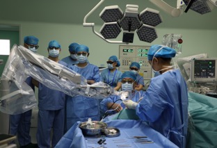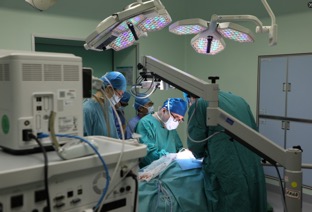 (徐磊进行3D外视镜下人工耳蜗手术教学)