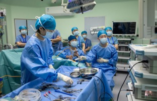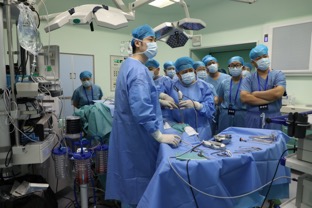(吕正华进行3D外视镜下咽喉头颈手术教学)