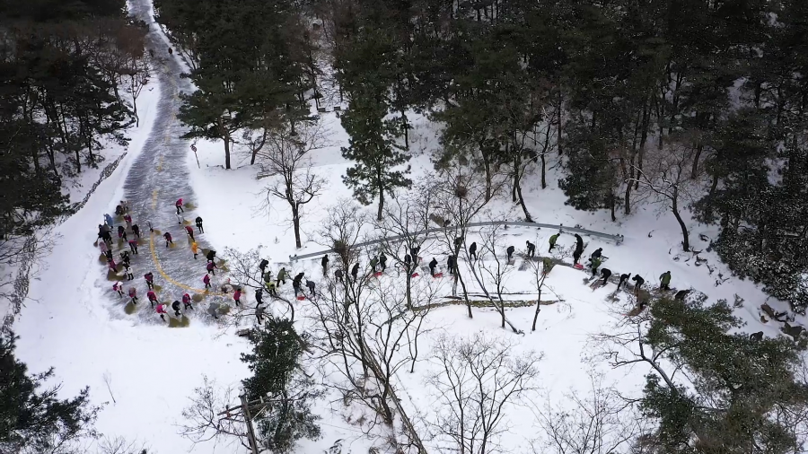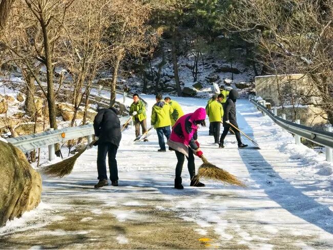 来蒙山参与扫雪