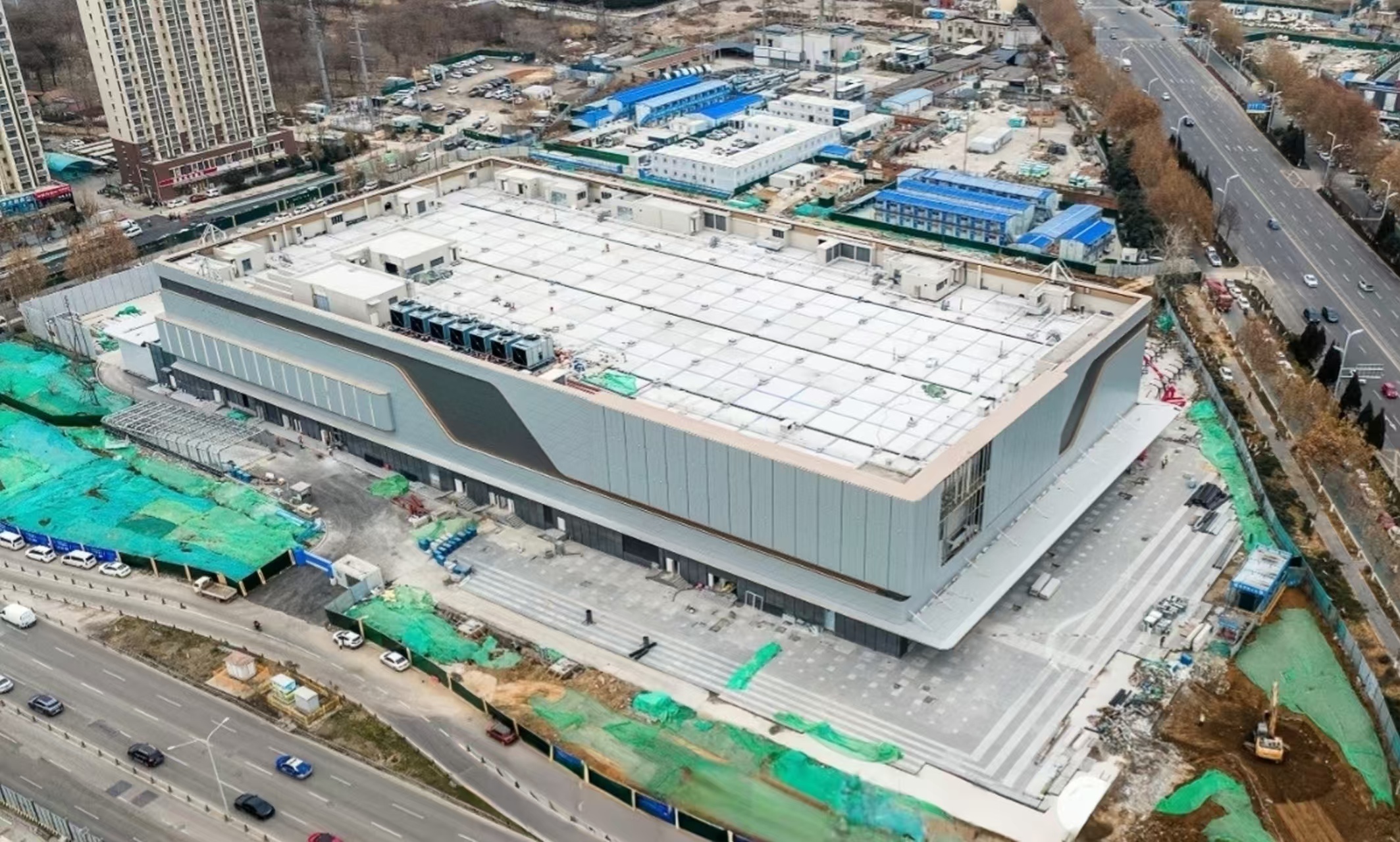 济南山姆会员商店坐落于工业南路与凤凰路交会处东北侧,规划地上两层为商业卖场,地下三层为车库及配套,目前外立面施工已基本完成,装饰装修及室外工程正加速推进。