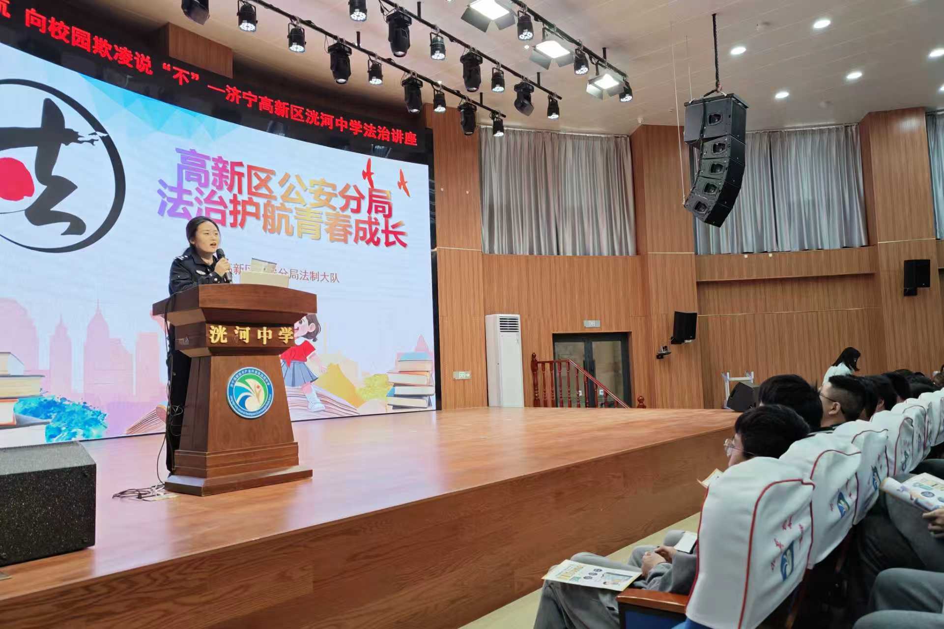 为有效提高广大在校学生的安全防范意识和自我保护能力,从源头上预防和减少校园安全事件的发生,全力打造安全、文明、和谐的教育教学环境,1月16日,济宁市高新区公安分局组织法制大队、刑侦大队、洸河派出所走进辖区洸河中学、丰泰中学开展法治宣传进校园活动。