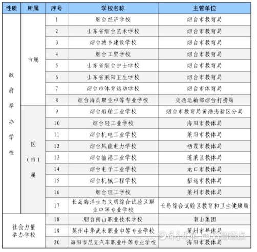 烟台市中职学校基本情况表