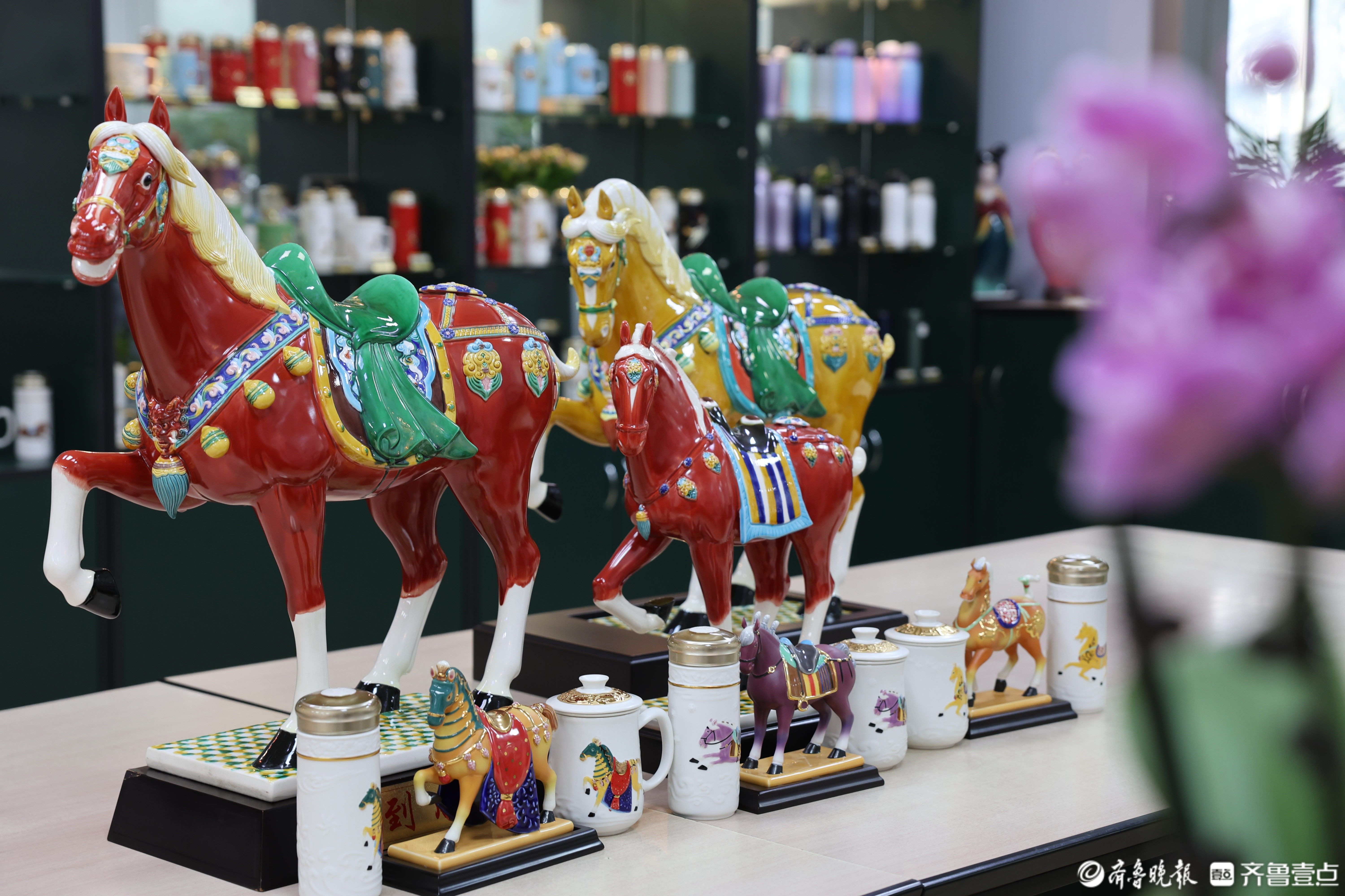 据了解,产品从优质瓷土到成品,历经数十道工序,经清洗、精修、施釉与手绘,高温烧制而成。山东北钛河陶瓷有限公司副总经理刘博源表示,今年设计制作“马”元素的陶瓷制品有几十个品种,有活瓷杯,有工艺品,严格把控72道工序,将最完美的工艺品传递给客户。“马象征着奋进与吉祥,我们希望借此作品,传递龙马精神。”