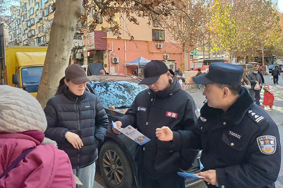 1月14日下午,济南市公安局天桥分局纬北路派出所深入社区开展反诈骗宣传活动。民警通过发放资料、现场讲解等方式,向居民重点揭露了“养老服务”“养老投资”等养老诈骗手段,以及刷单、虚假投资、冒充公检法等五大高发电信网络诈骗的作案特点,提醒大家增强防范意识,守住财产安全。