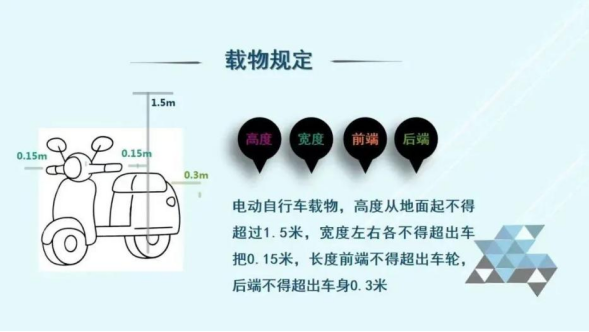 4.在电动自行车上加装货架,会导致车身宽度增加,体积变大,如不慎钩住过往车辆、行人等,往往会人仰车翻,严重危害自己及他人生命财产安全。