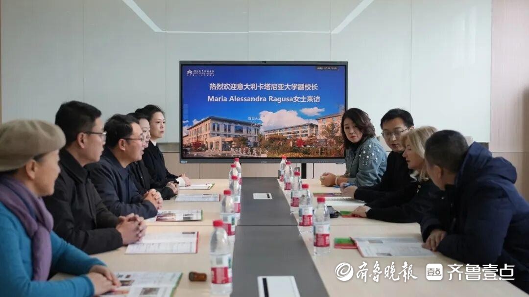 1月14日上午,意大利卡塔尼亚大学国际交流副校长Maria Alessandra Ragusa女士及中方项目负责人一行访问烟台天立高级中学,校长孙旭峰及学校相关负责人参加本次活动。