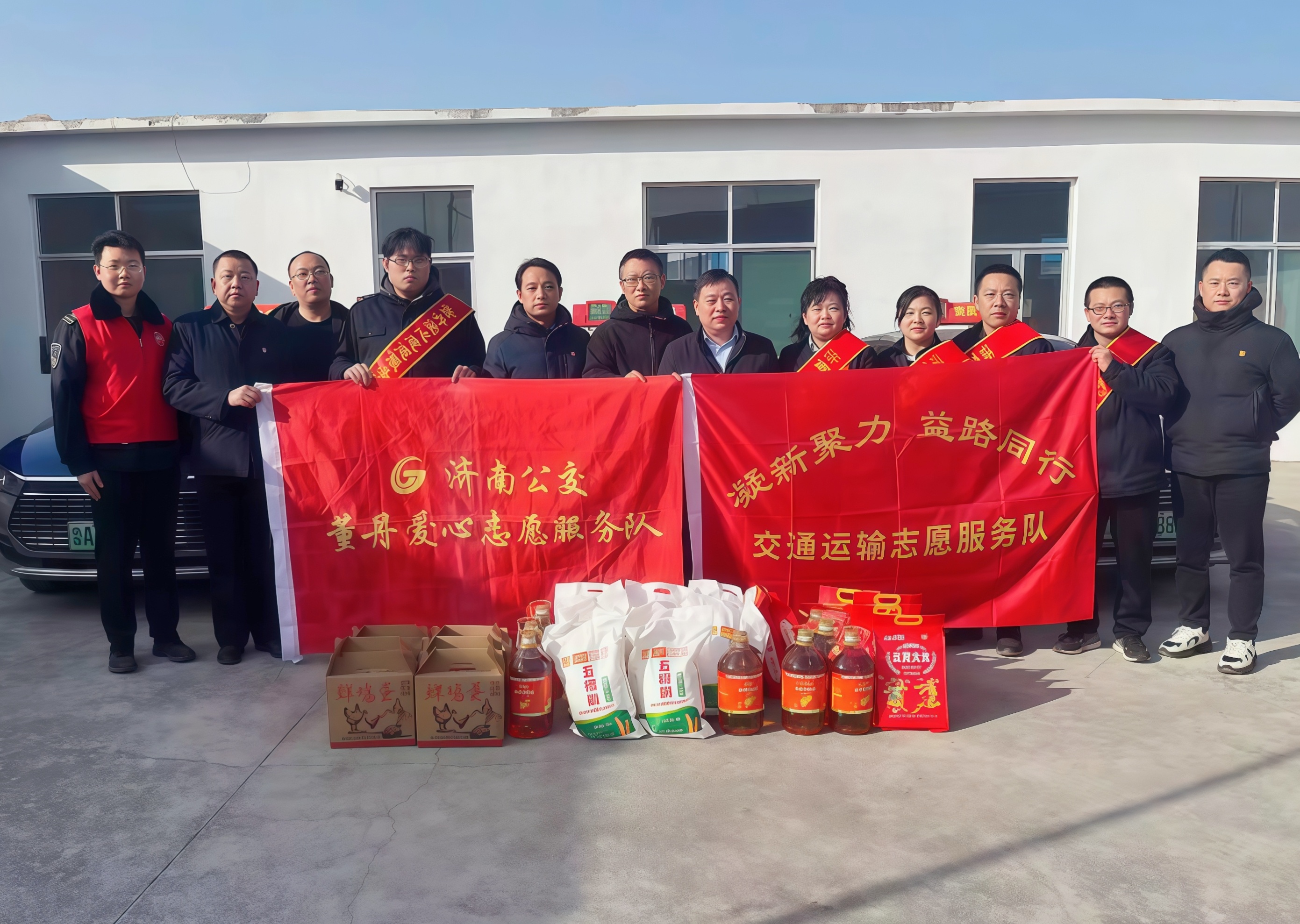 近日,济阳区垛石街道石墓田村暖意融融。由济南市城乡客运服务中心牵头,济南公交B52路雷锋精神主题线路、董丹爱心志愿服务队及交通工会志愿服务队、济南大地汽车出租有限公司、泉城的士大队、巾帼中队等爱心企业与品牌车队共同参与的为民慰问活动顺利开展。一行人携带米、面、油、鸡蛋等生活物资进村入户,将客运行业的关怀精准送达困难群众身边。