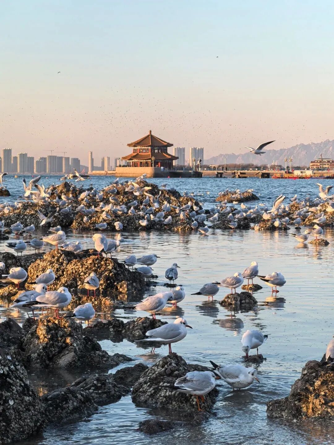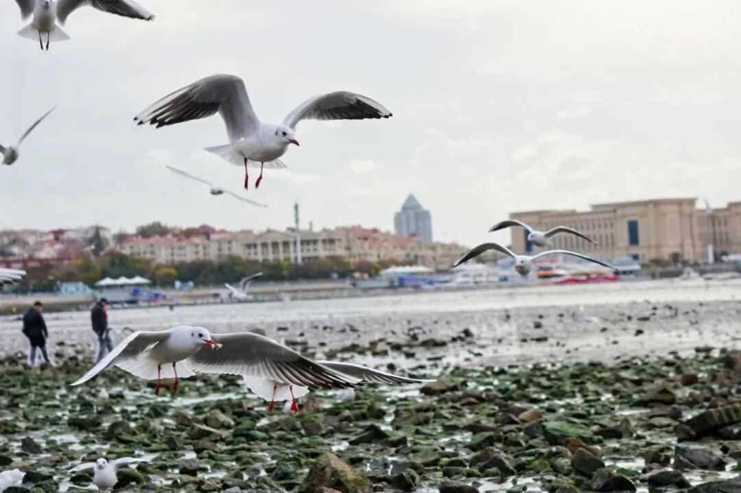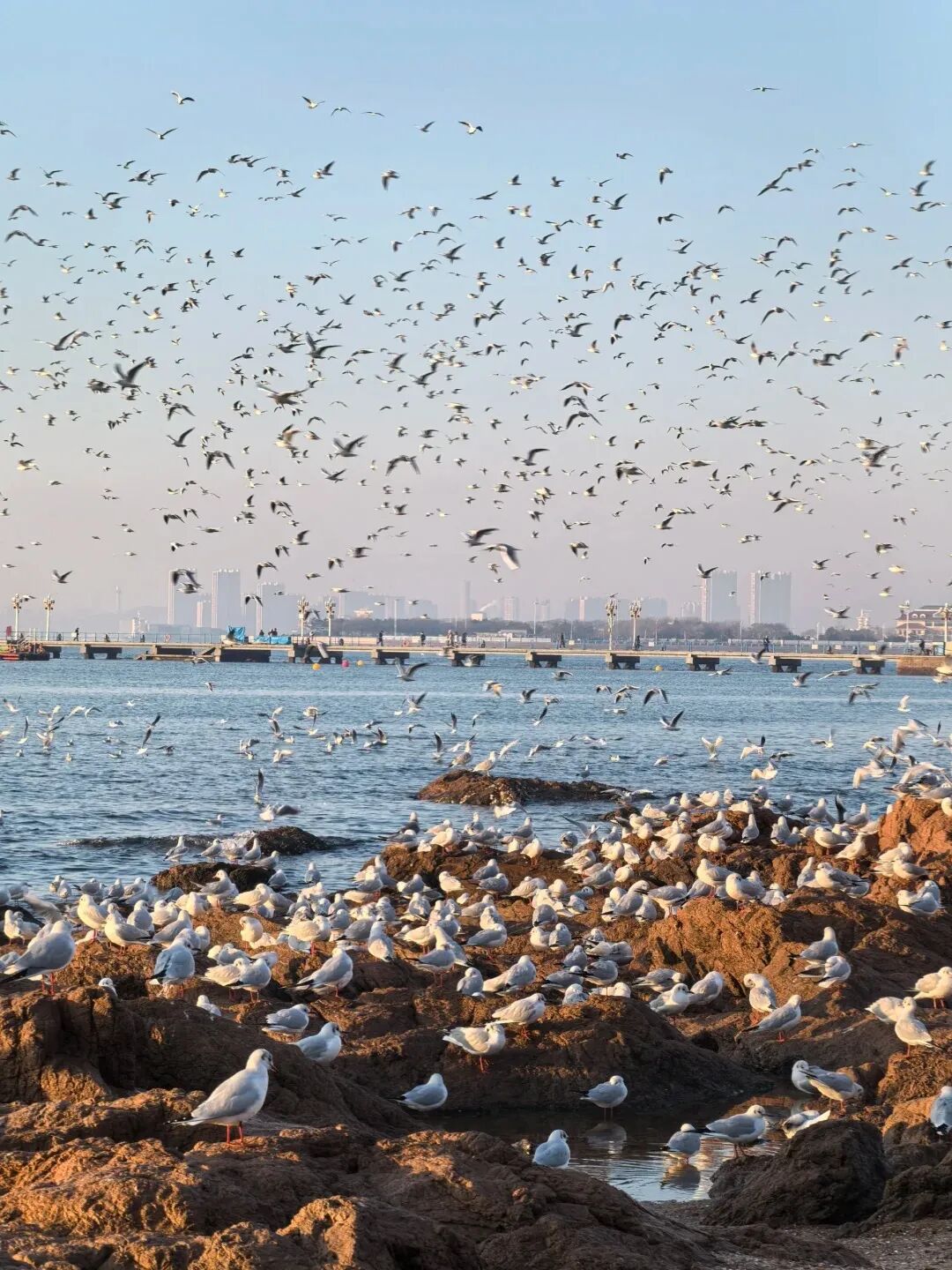 海风轻拂,鸥鸣阵阵,白影翩跹。