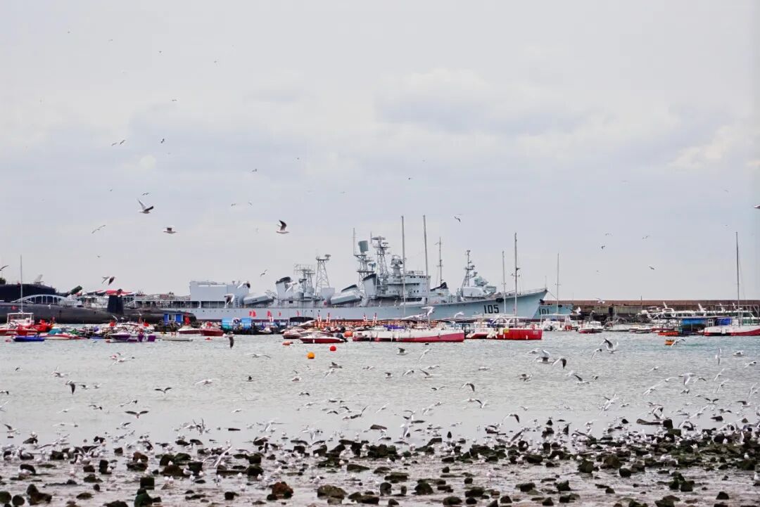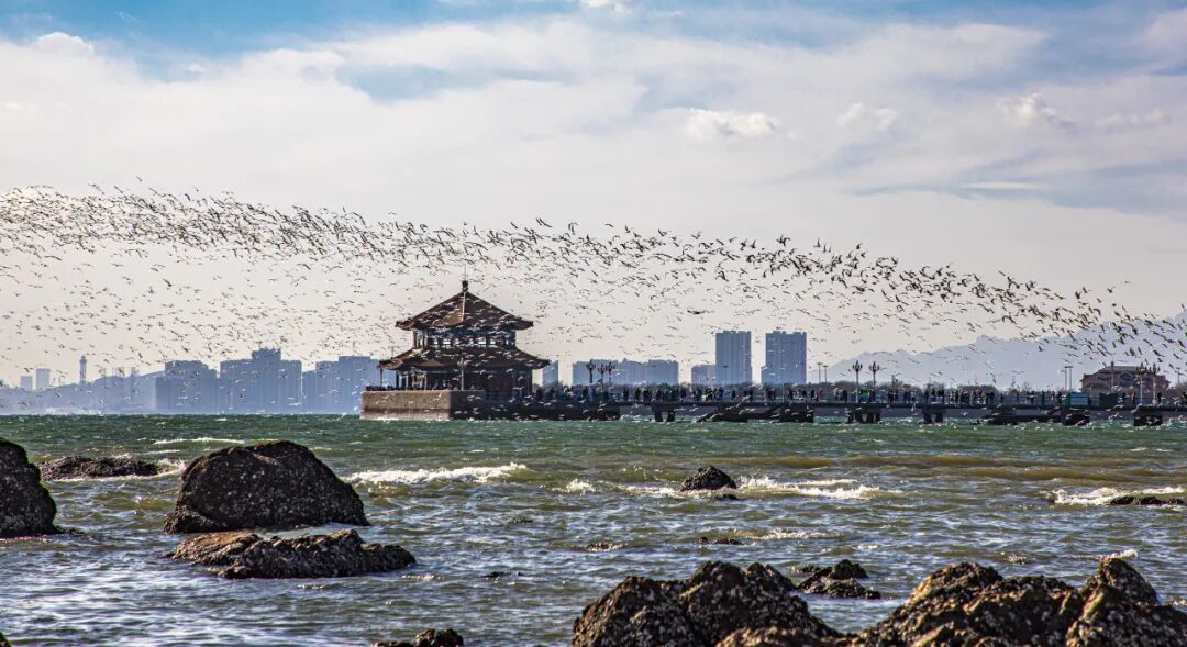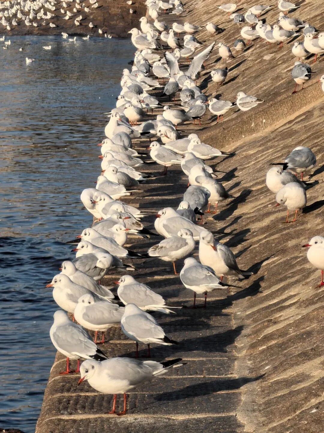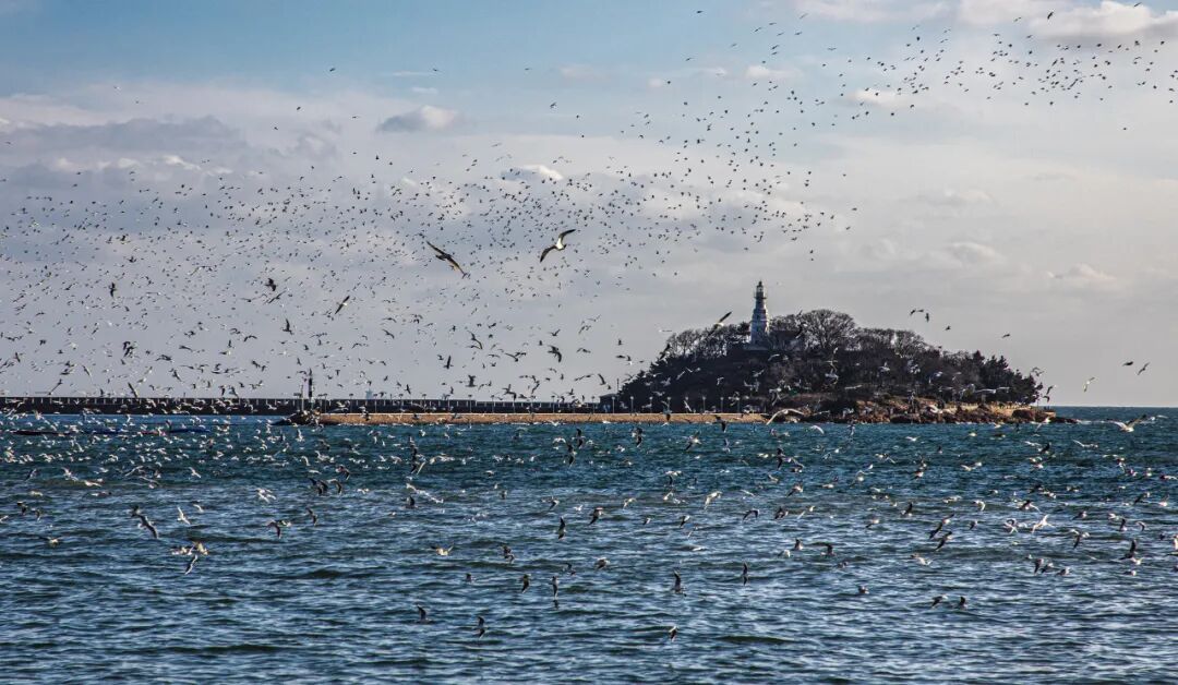海风轻拂,鸥鸣阵阵,白影翩跹。