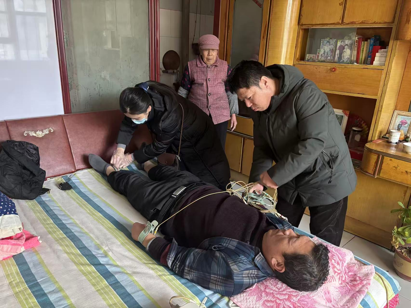 本次活动共抽调6名医疗业务骨干组建下乡巡诊慰问队,工作人员提前备好食用油、大米和常用药品等物资,每到一户优抚对象家中,医护人员都为每位老兵开展基础身体检查,测量血压、血糖、心电图等,耐心询问其身体状况,针对老兵们的身体状况叮嘱他们合理用药,给予康复指导和日常护理建议。工作人员为他们送上慰问物资,有效解决生活中的实际难题。